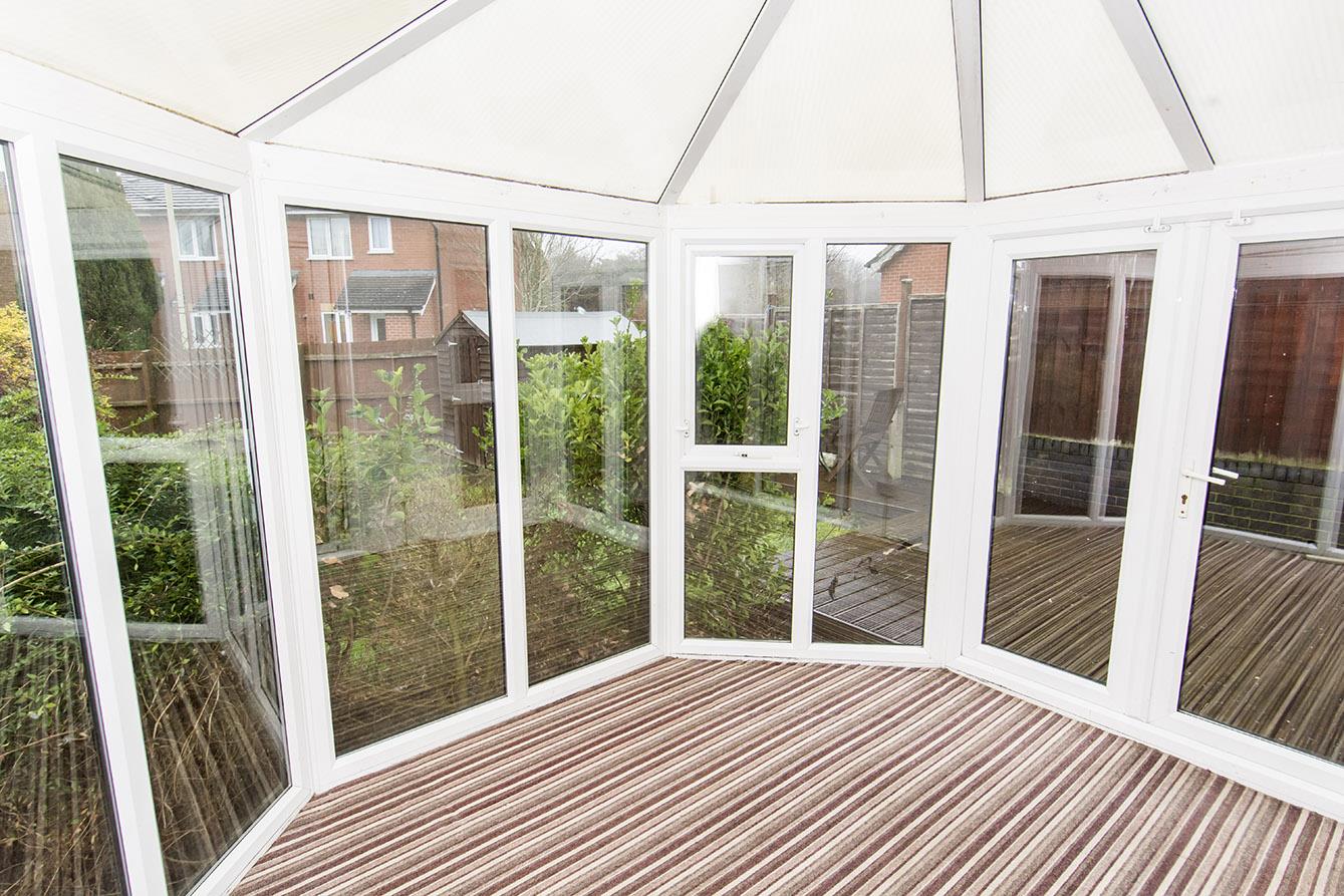 Conservatory - 3.25m x 2.39m (10'8" x 7'10") - The Upvc conservatory has a polycarbonate roof, power sockets and a door that opens into the garden