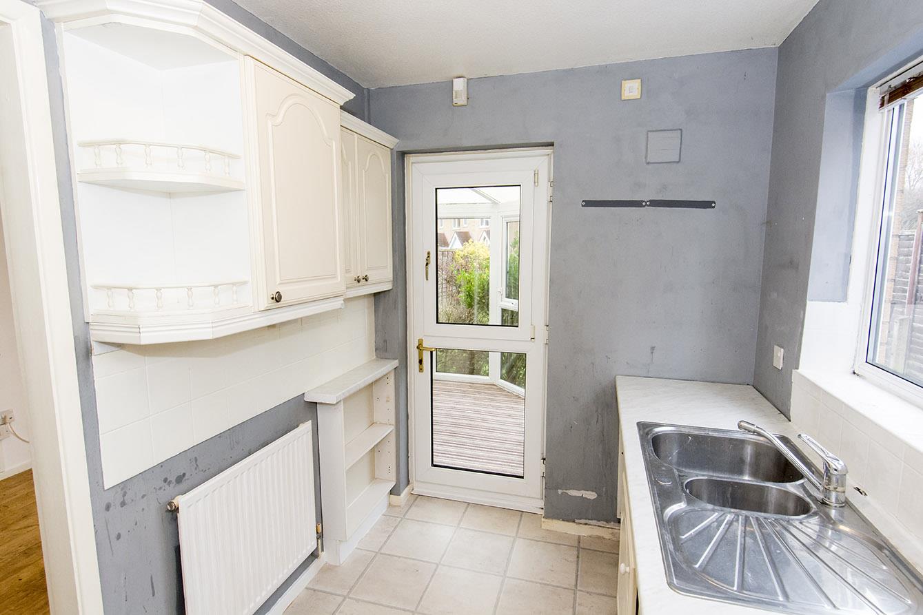 Kitchen - 3.38m x 1.96m (11'1" x 6'5") - Fitted with a range of kitchen cabinets with contrasting surfaces over. Stainless steel bowl and a half sink unit with mixer taps. Built under singe electric oven, gas hob with extractor canopy. There is space for a washing machine and fridge. Window to the side aspect and a glazed door opens into the conservatory.