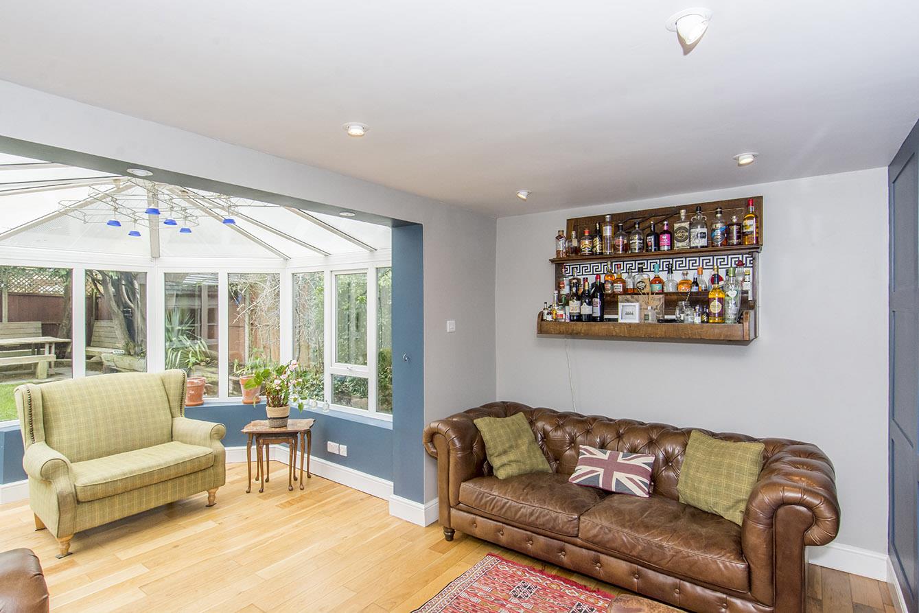 Lounge - 4.34m x 2.57m (14'3" x 8'5") - The generous sized lounge is beautifully decorated with attractive wall panelling and engineered oak flooring. The lounge opens up into the sunny conservatory with French doors that open into the garden. Two radiators and spotlights to the ceiling.