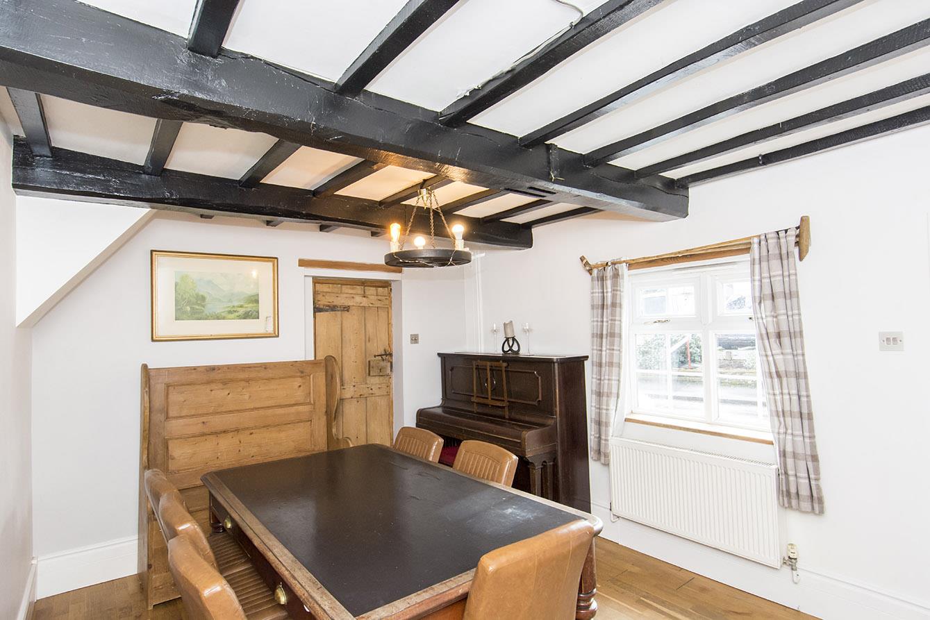 Dining Room - 4.14m x 3.18m (13'7" x 10'5") - Enter the property via a composite front door that leads into the stylish dining room. Which is the older part of the cottage with engineered oak flooring throughout and exposed ceiling beams, this room truly showcases true charm and character. There is a door that leads into the snug. A window to the front aspect and a radiator.