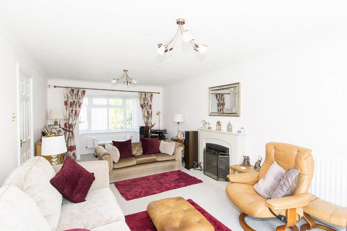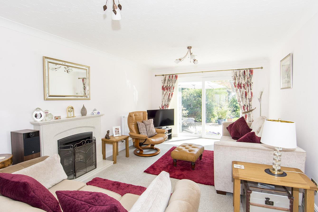 Lounge - 6.50m x 3.35m (21'4" x 11'15") - The bay fronted lounge has a fireplace housing an electric log effect fire and a set of patio doors open into the garden.