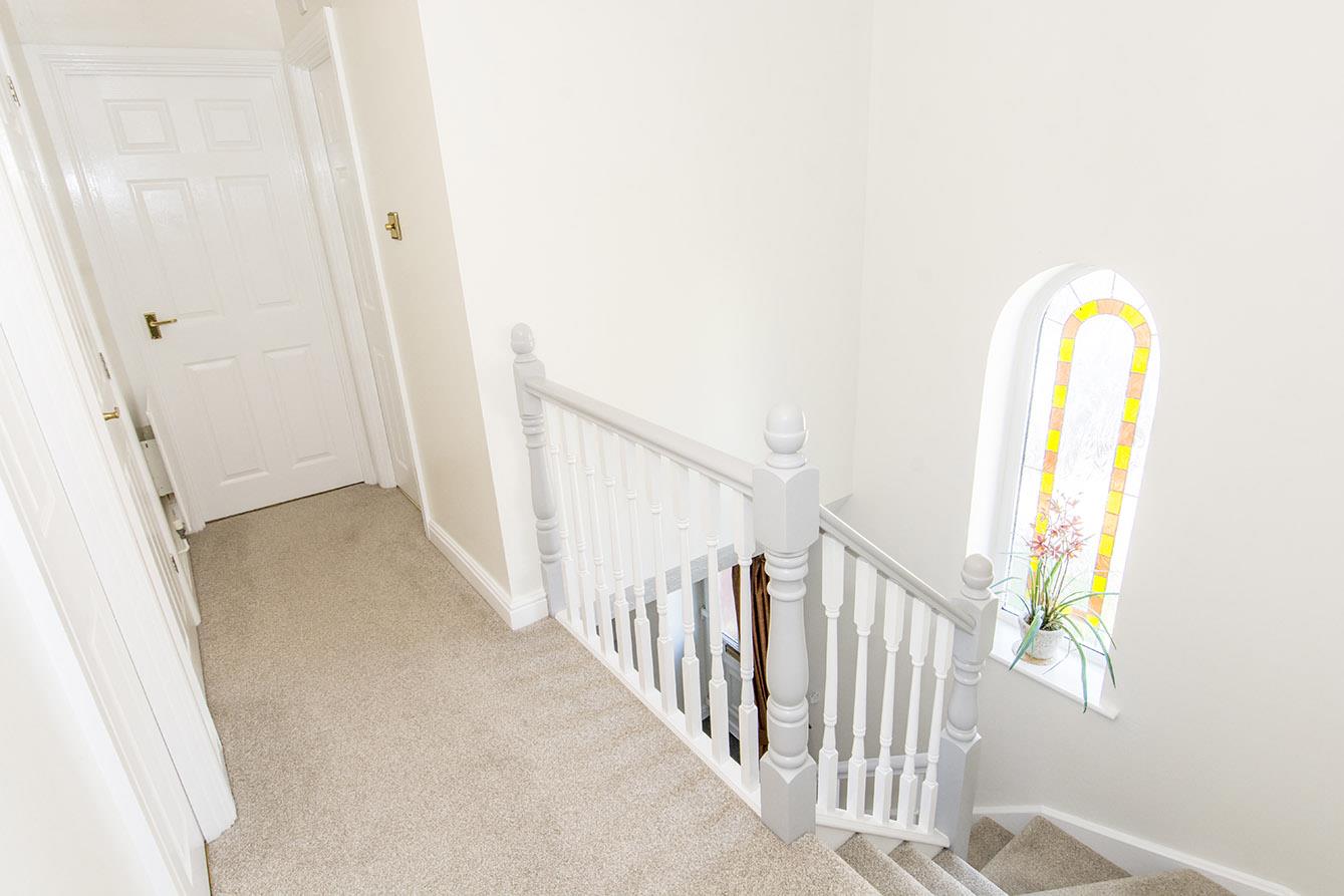 Landing - A feature stained glass arched window. Airing cupboard. Loft access.