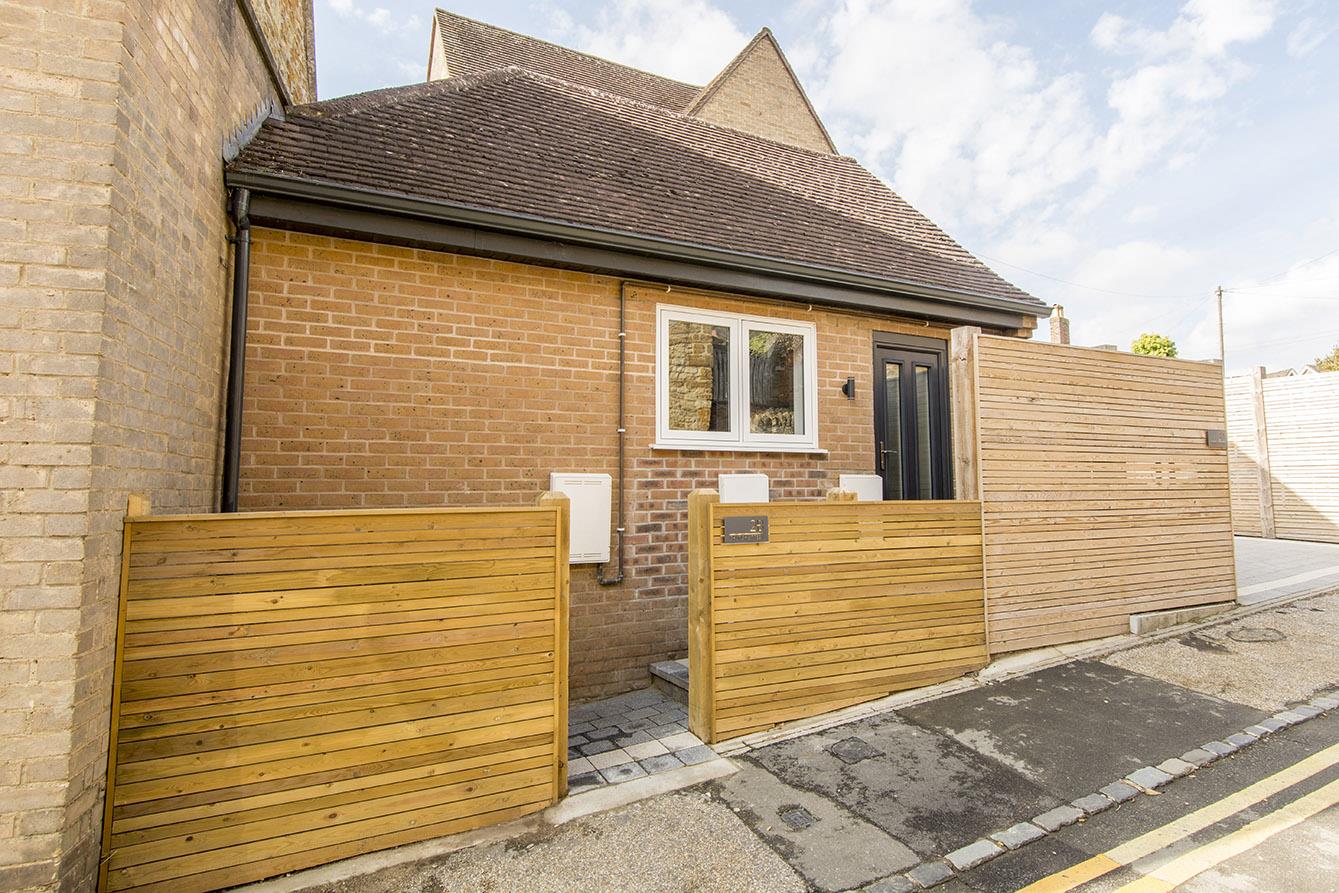 Entry Area - Block paved flooring with timber fencing leading to the apartments main entrance door.
