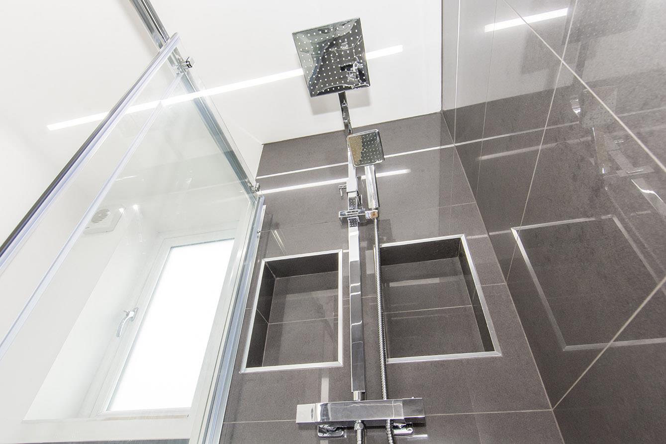 Shower Room - 2.18m plus recess x 1.63m plus recess (7'2" plus r - WC and wash hand basin inset to storage units. Double width shower cubicle with rain and flexible shower heads. Heated towel rail. Spotlights to ceiling. Extractor fan. Luxury vinyl tiled flooring. Tiled splash backs.
