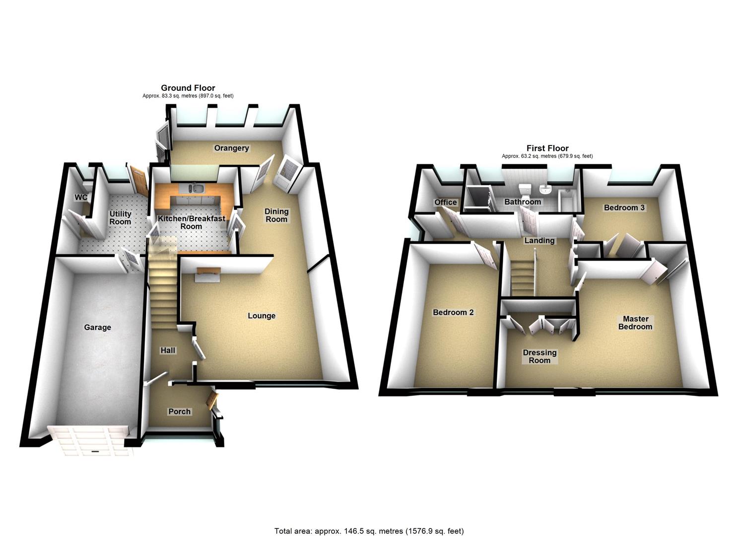 • Three double bedrooms plus office