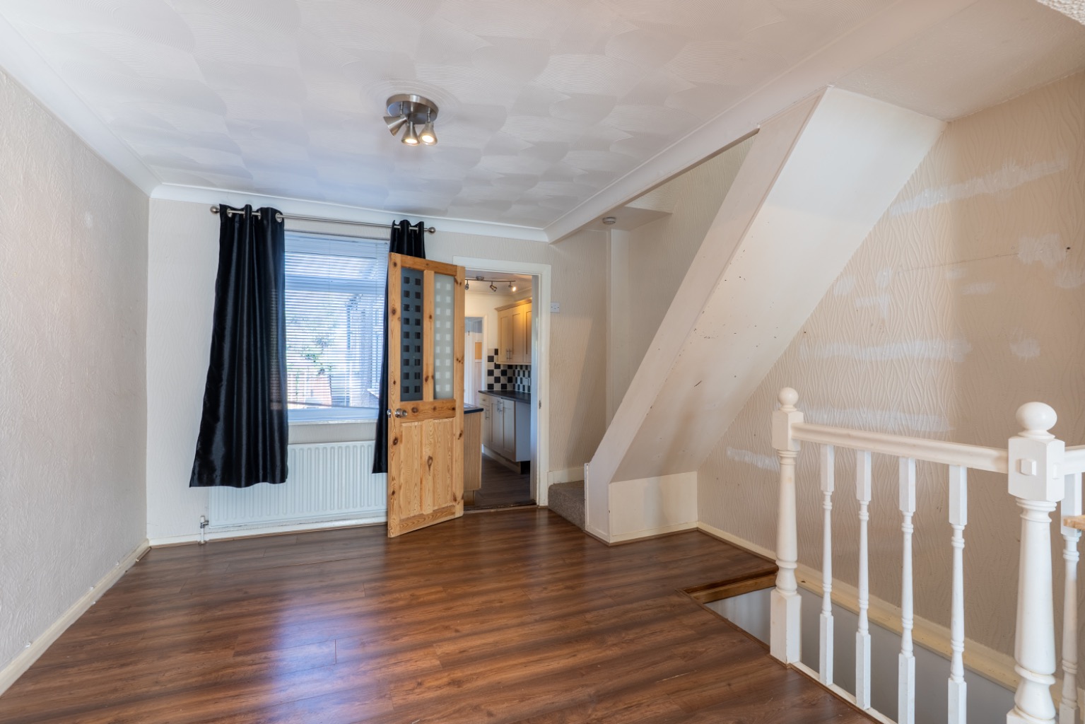 Upon entering the home via an entrance porch, you are welcomed into a spacious through lounge/diner, creating a bright and sociable living space ideal for both relaxing and entertaining. To the rear, the kitchen provides ample storage and workspace, with access to the garden beyond. The property also benefits from a useful cellar, offering valuable additional storage or potential for further use subject to requirements. Unlike many homes of this style, the bathroom is conveniently located on the ground floor.