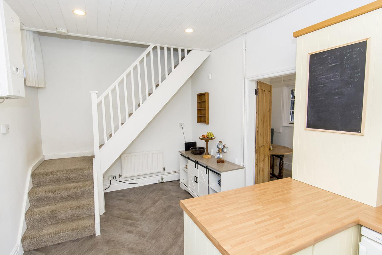 Kitchen/Diner - 4.90m x 2.74m (16'1" x 9'0") - Fitted base and wall units. Laminated work surfaces with complimentary tiled splash backs. Fitted double oven and four ring gas hob. Space and plumbing for automatic dishwasher. Fitted dishwasher. Space for under counter fridge and freezer. One and a half sink and drainer. Wood laminate flooring. Double-glazed window to the rear. Wall mounted gas fired combination central heating boiler. Stairs rise into the first floor. Stable door leading outside.