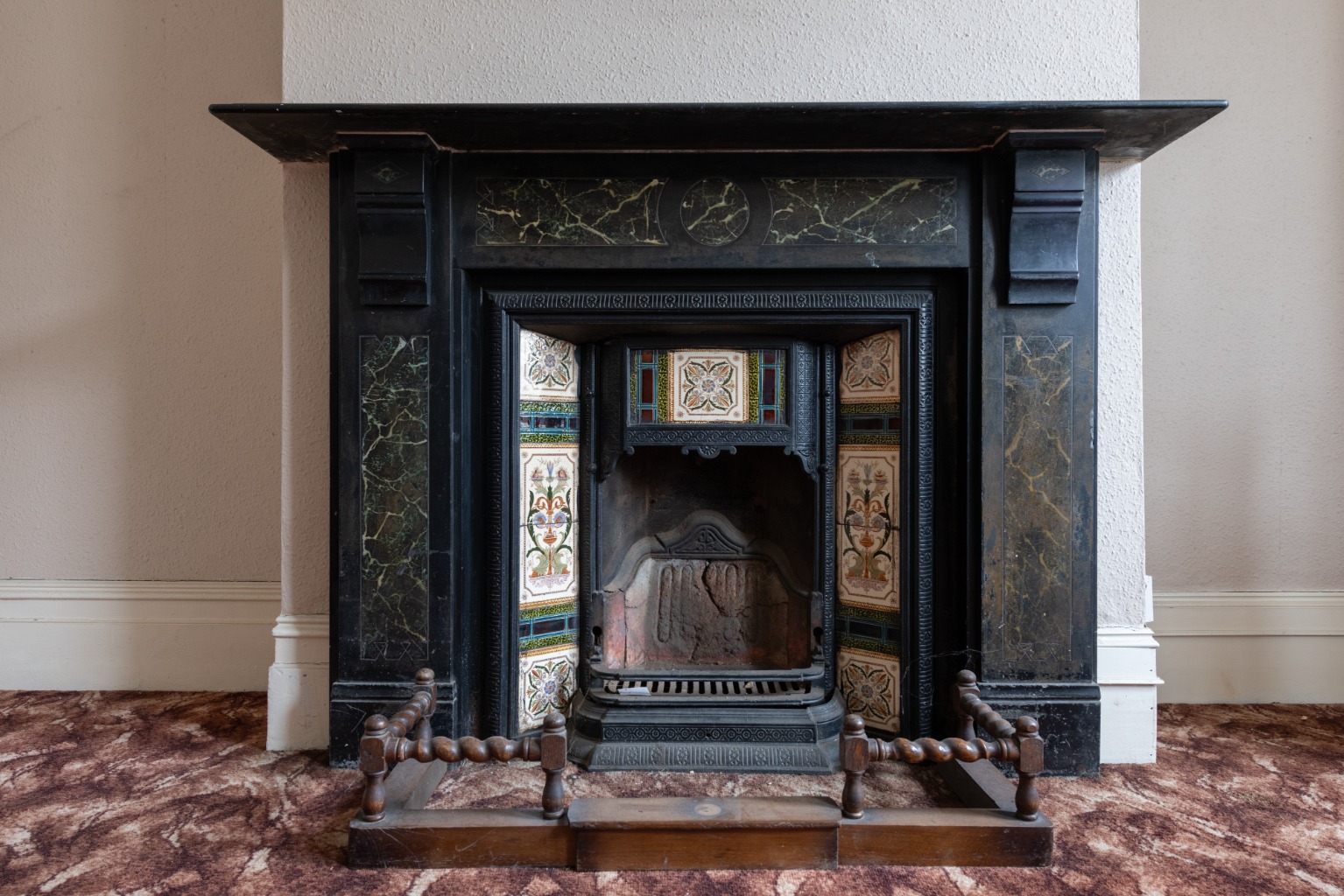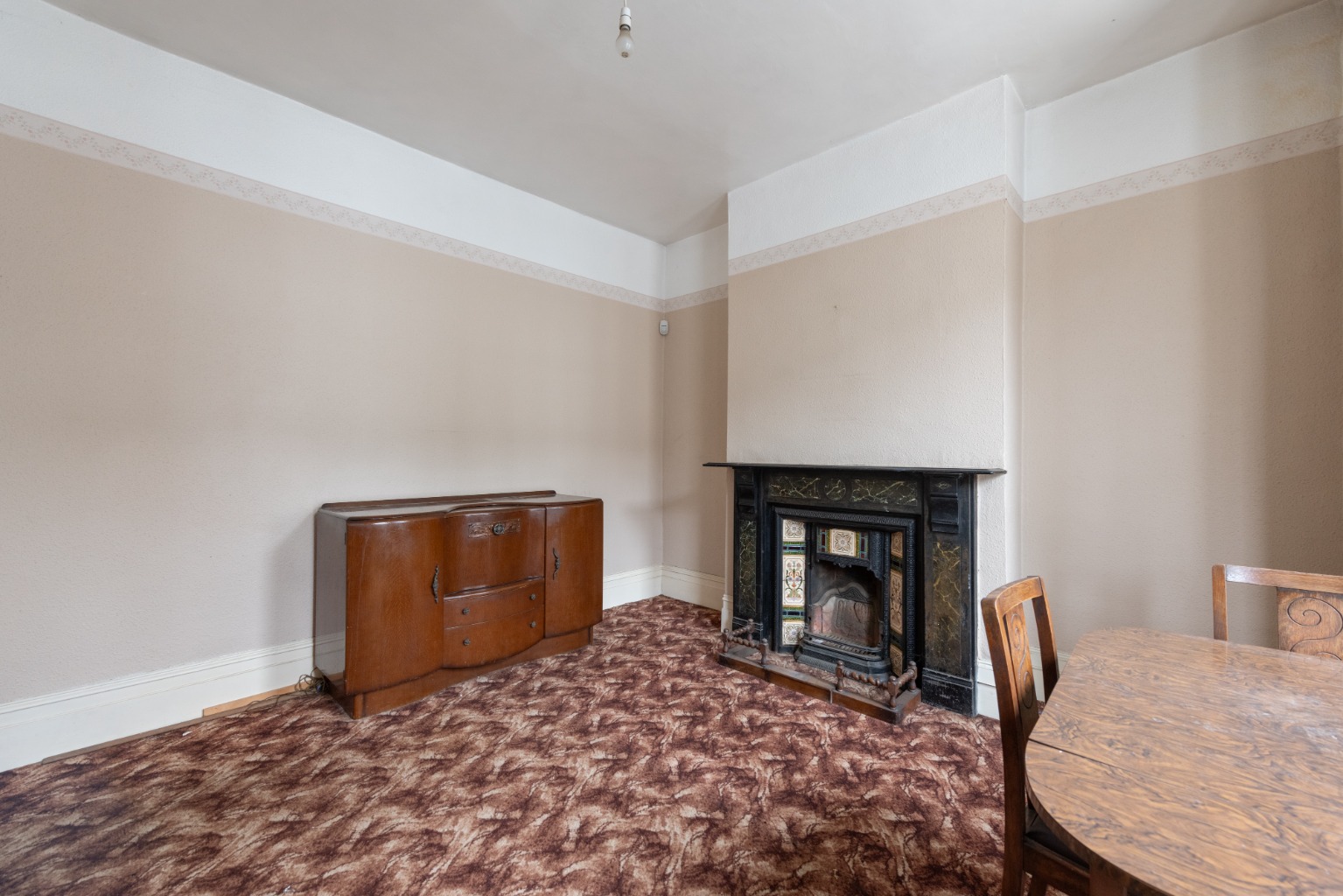 The first of three receptions lies to the front, with natural light flooding the room from the large bay and featuring a beautiful period fireplace with tiled inserts and an ironwork hearth. A lick of paint and new flooring are all that’s required to take advantage of this large, bright space.