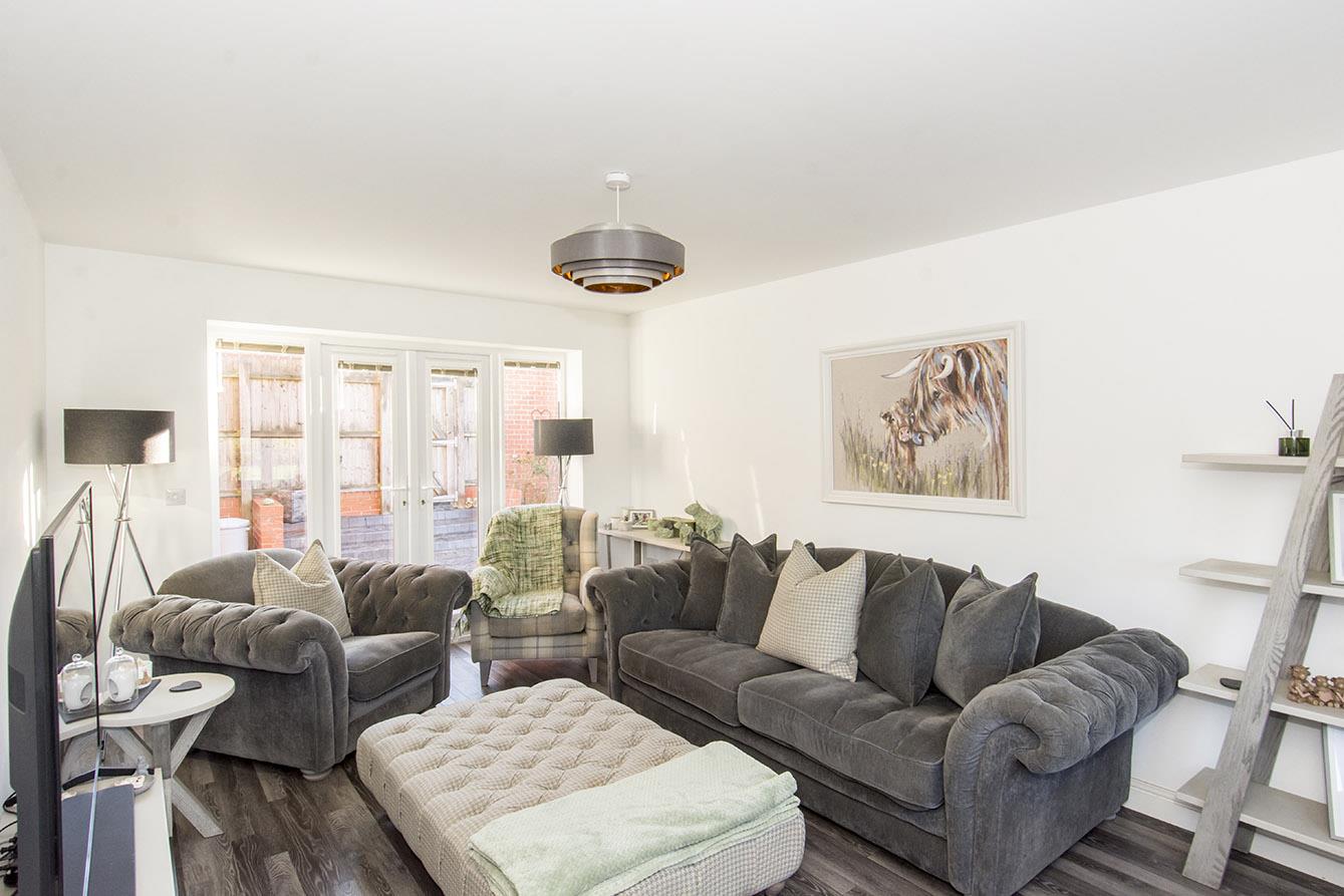 Lounge - 4.90m x 3.43m (16'1" x 11'3") - Within the lounge there is a window to the front aspect looking over the fields. There are a set of French doors opening into the garden. Karndean flooring throughout and two radiators.