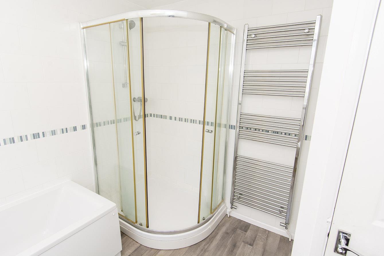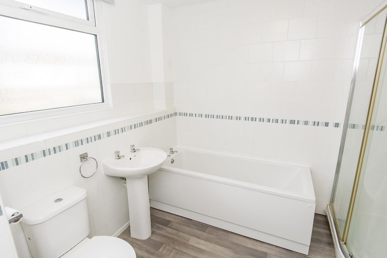 Bathroom - 2.90m x 3.05m (9'6" x 10'00") - Fitted with a low level WC. Pedestal wash hand basin. Bath and separate shower cubicle. Heated towel rail. Ceramic wall tiles. vinyl flooring. Opaque window to the rear aspect and an airing cupboard.