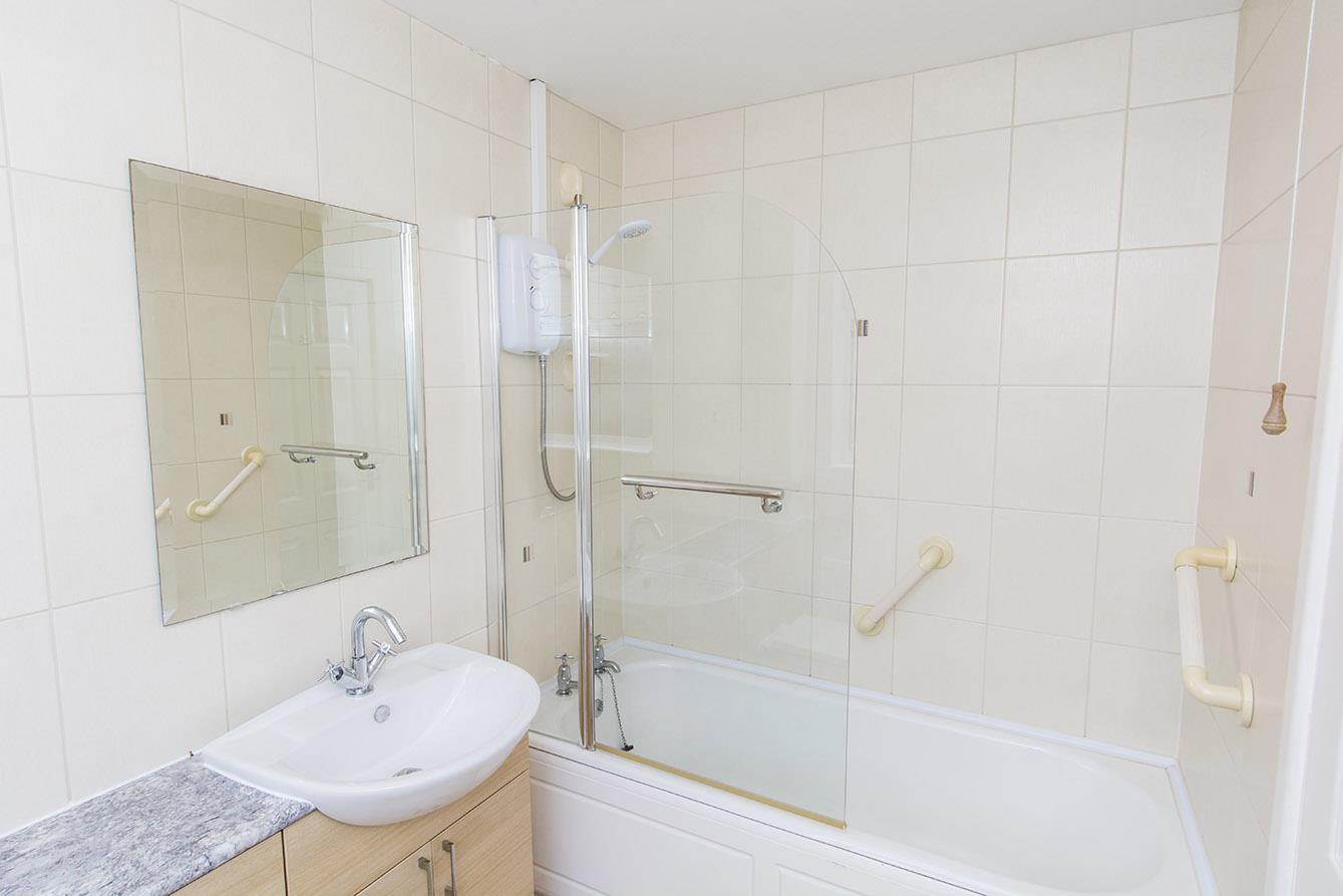 Bathroom - Fitted with a back to wall W/C, wash hand basin set into vanity cupboards, bath with Mira electric shower. Ceramic wall tiles throughout. Radiator and an opaque window to the rear aspect.