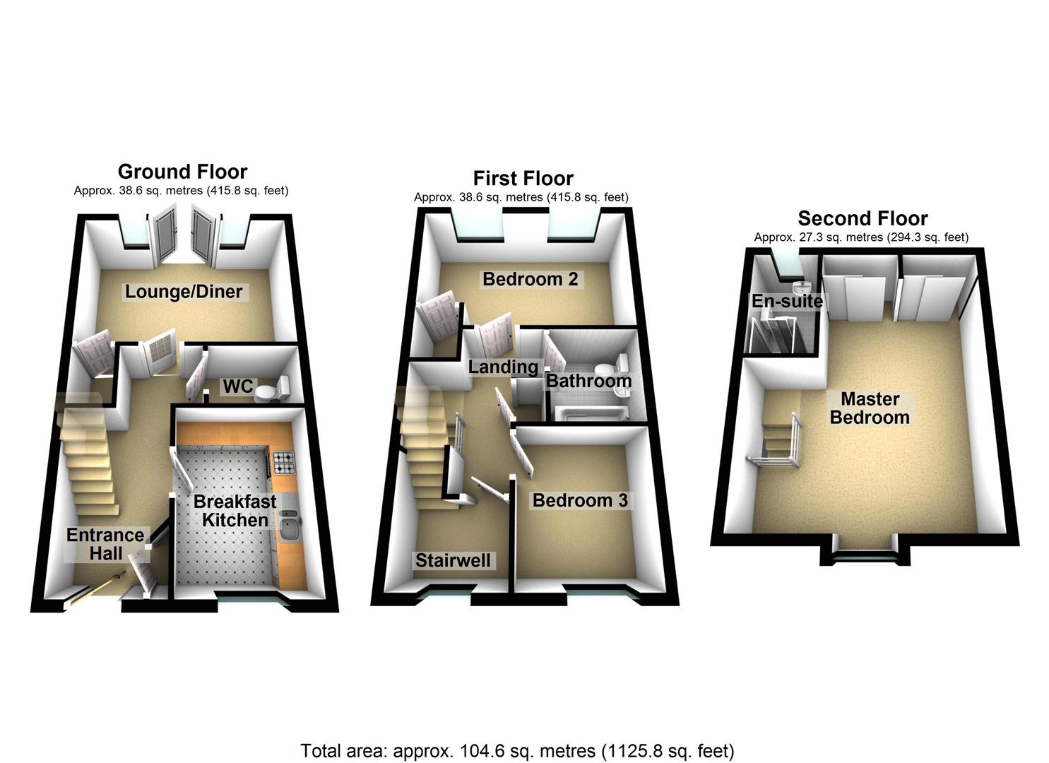 An attractive Taylor Wimpy built three bedroom, three storey semi detached property, located in the well regarded Wellington Place development. Wellington Place enjoys a position close to Market Harborough's fantastic canal towpath with its own country park areas, Sainsbury's Local and primary school. It also provides easy access into Market Harborough's town centre with its vast range of further amenities. The property itself is well presented and spacious and briefly comprises entrance hallway, breakfast kitchen, ground floor WC and lounge/diner. To the first floor there are two double bedrooms, bathroom and stairwell and to the second floor, there's a large master bedroom with built in wardrobes and en-suite. Outside, there is a driveway for two cars in front of the property and a south-west facing rear garden.