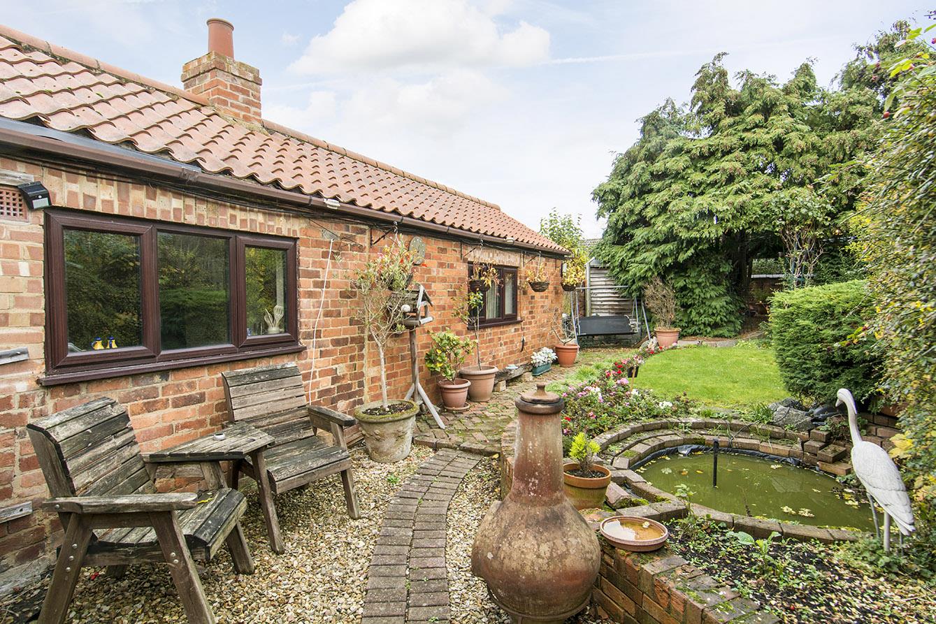 Garden - Cottage style with variety of gravelled block paved and lawned areas. Feature pond. Block paved pathway leading to driveway and car port.
