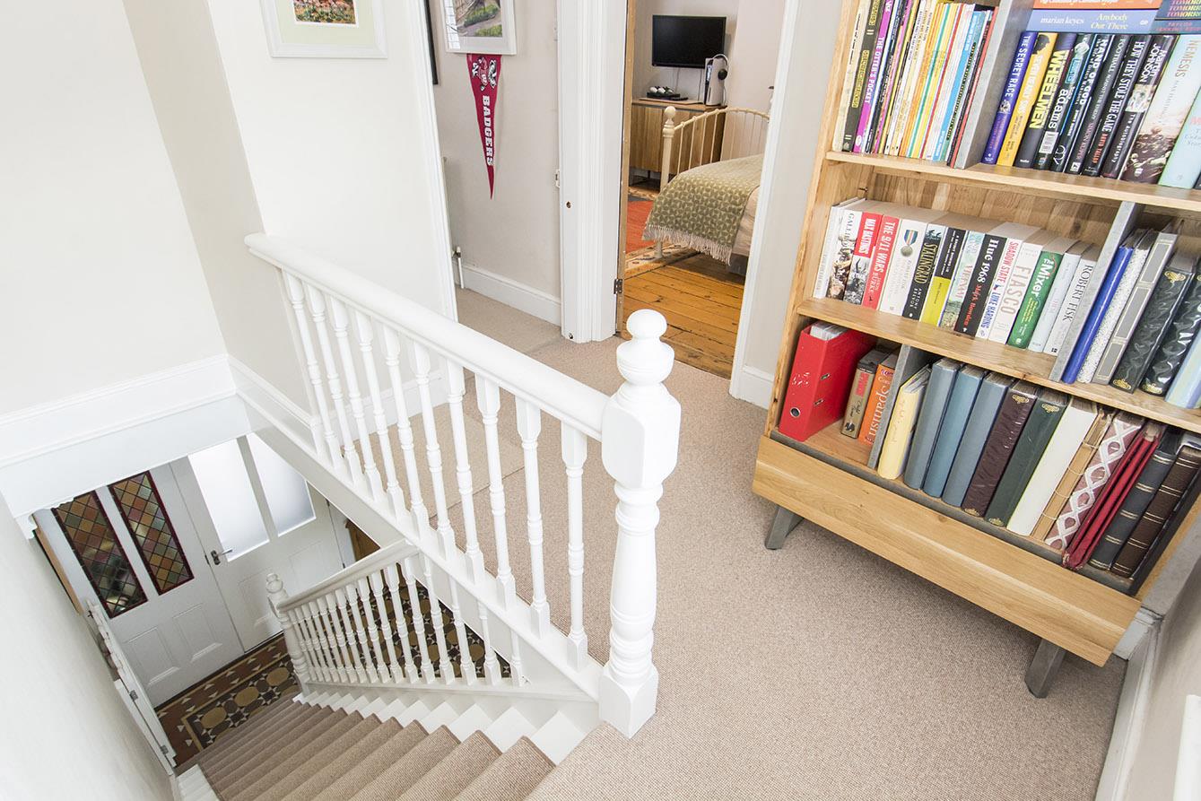 First Floor Landing - Shuttered double-glazed window to the rear elevation. Timber balustrade. Access with fitted loft ladder to boarded and insulated loft space. Stripped timber doors to rooms.