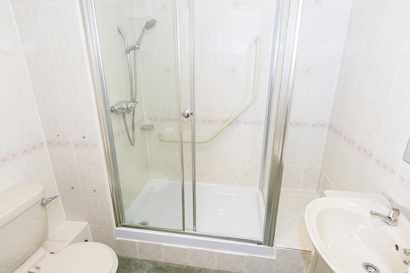 Shower Room - Double shower cubicle with mains shower fitment. Wash hand basin. Low level WC. Complementary tiling. Heated towel rail and warm air heater. Wall light. Extractor fan.