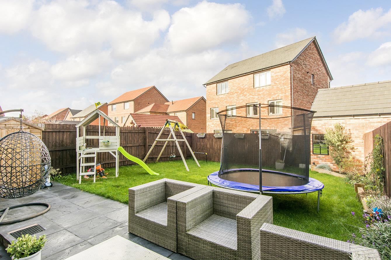 Rear Garden - The rear garden is laid mainly to lawn with a slate tiled patio area. It is enclosed by timber lat fencing.