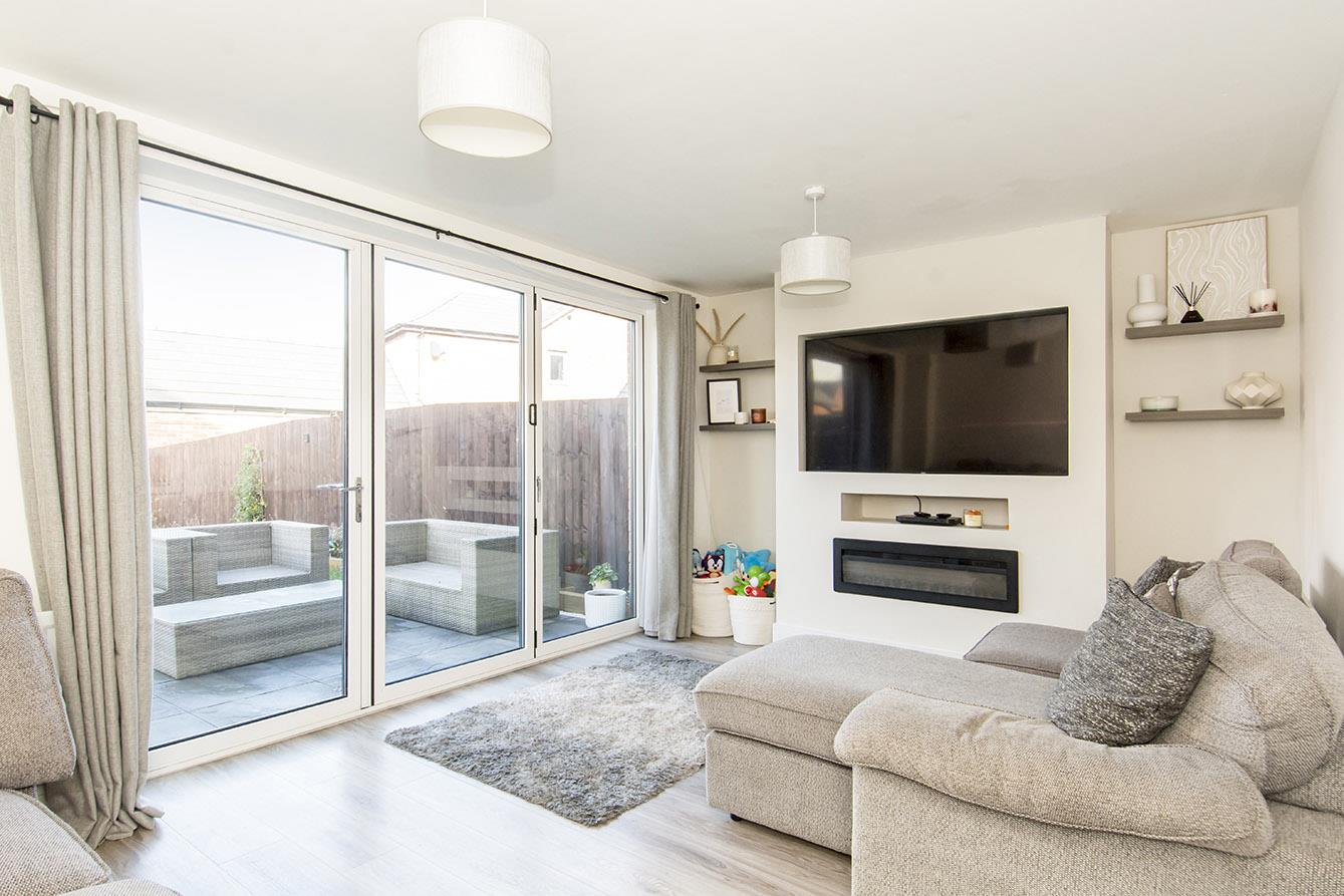 Lounge/Diner - 4.93m x 3.28m (16'2" x 10'9") - Double-glazed bi-fold doors opening out to the rear garden. Wood laminate flooring. Radiator. Built in modern electric fire. Recess for large flat screen television. Television point. Radiator.