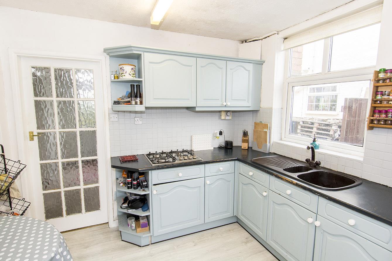 Kitchen - 5.38m x 3.05m max / 1.93m min (17'8" x 10'0" max - Two UPVC double-glazed windows to side. UPVC double-glazed rear entrance door. Fitted with a range of wall and floor mounted units. Gas hob with extractor hood. Electric double oven. Worktops with one and a half bowl sink inset. Space for fridge/freezer. Space and plumbing for washing machine and dishwasher. Space for dryer. Radiator.