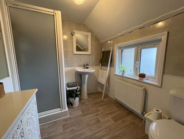 Shower Room - Shower cubicle with mains shower fitment. Pedestal wash hand basin. Low level WC. Radiator. UPVC double glazed window to the rear aspect. Loft access hatch with pull-down ladder to lit, insulated and boarded loft space.