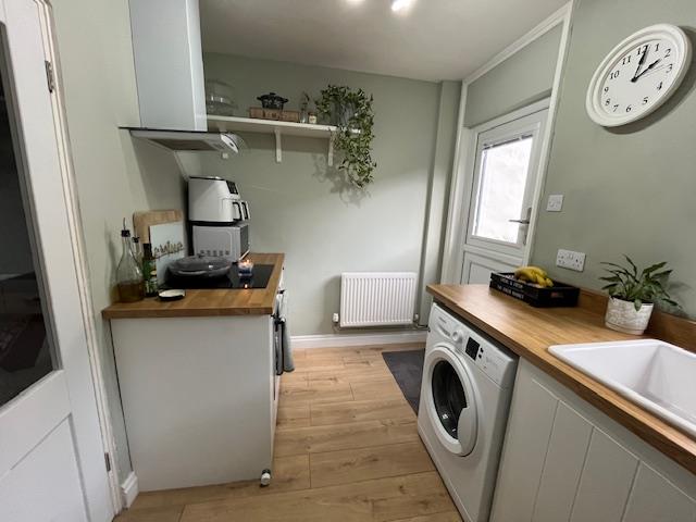 Kitchen - 3.20m' x 2.08m (10'6' x 6'10") - UPVC double glazed window to the rear aspect. Range of refitted kitchen units. Roll edge work surfaces. Stainless steel sink and drainer. Fitted oven and four ring induction hob. Space and plumbing for automatic washing machine. Space fore fridge/freezer. Radiator. UPVC double glazed stable-style door leading out to the rear courtyard.