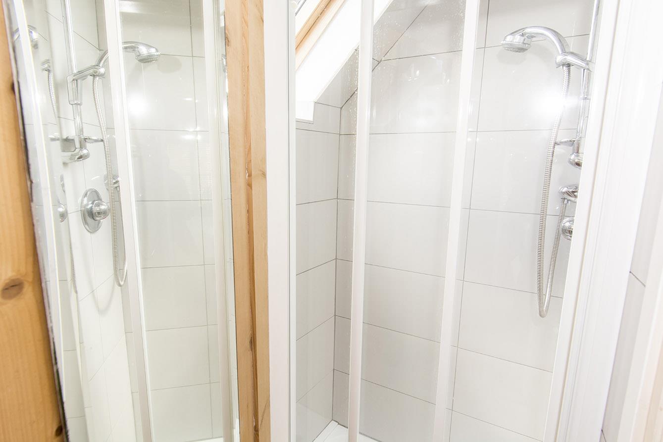 En-Suite Shower - Double-glazed Velux window. Stripped timber flooring. Shower cubicle.