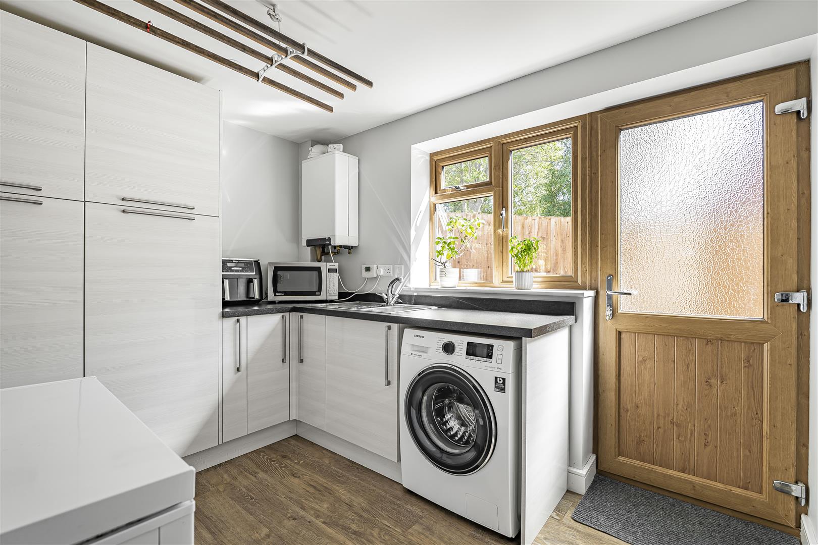 Utility - 3.20m x 2.39m (10'6" x 7'10") - The convenient utility room is accessible from the kitchen, enhancing the practicality of the layout. Fitted with modern cabinets with complimenting surfaces. Stainless steel sink unit with mixer taps. There is apace for a washing machine and a chest freezer. The gas central heating boiler is wall mounted. Karndean flooring and a radiator. A window and a door to the side aspect.