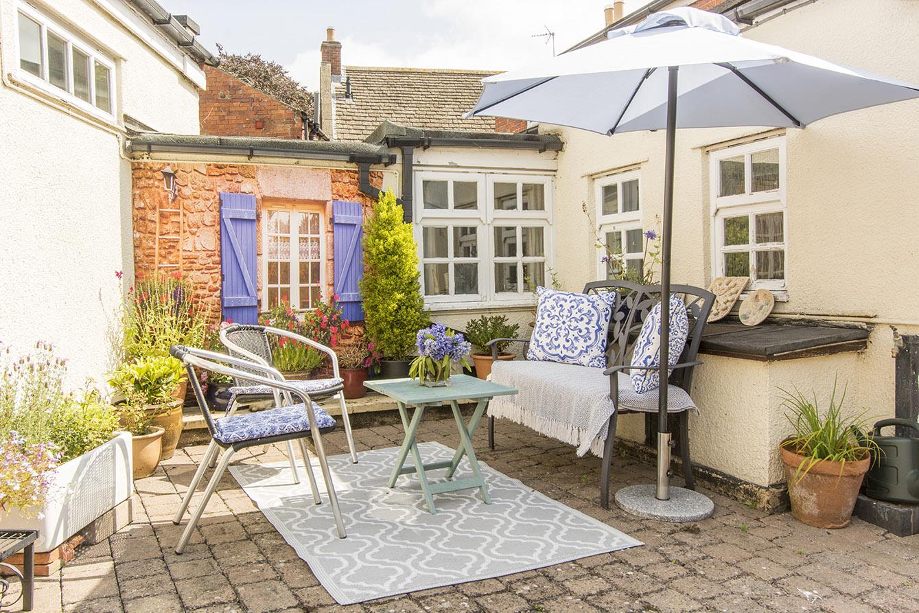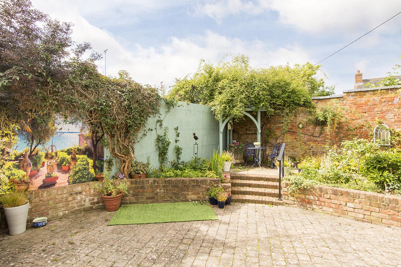 Outside is a secure and private, mainly hard landscaped garden with well stocked flower beds and parking for up to four cars. There is also a single garage. The property is offered with no upwards chain.