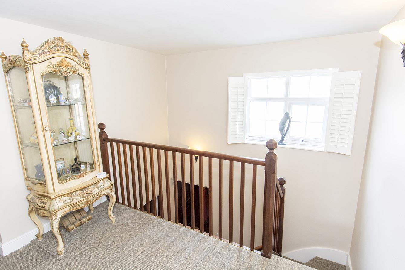 First Floor Galleried Landing - Timber balustrade. Radiator. Opaque double-glazed window. Two wall lights. Doors to rooms.