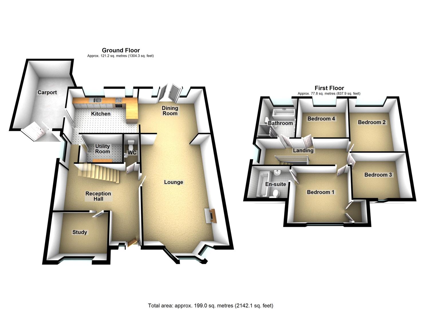 Reception hall, downstairs WC, 22'3" x 15'4" bay fronted lounge with feature wood burning stove, dining room, bespoke fully fitted modern kitchen/breakfast room, utility room, downstairs study/bedroom five, landing, four double bedrooms, en-suite and family bathroom. There is also a good sized lawned garden adjoin open fields to the rear, multi vehicle parking and car port.
