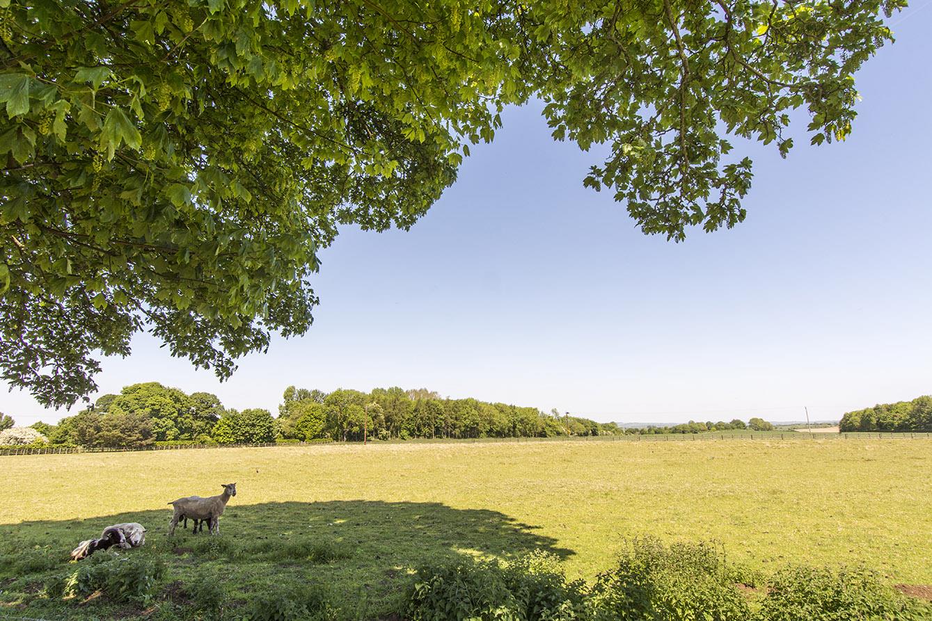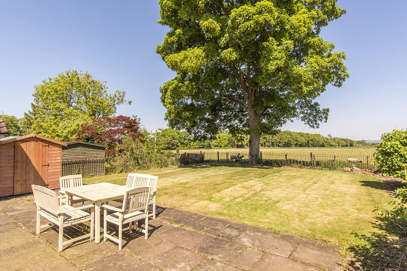 Outside Rear - The rear garden is mainly laid to a good sized lawn directly adjoining and overlooking open paddock land. There is a paved patio area and timber garden store. The rear garden is enclosed by wrought iron garden fence.