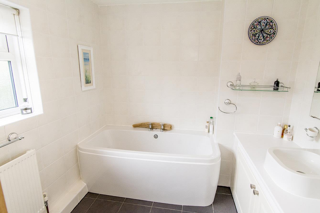 Family Bathroom - 2.77m x 2.41m (9'1 x 7'11) - Comprising: Bath, wash hand basin over a fitted vanity unit and a low level WC. UPVC double glazed window to front aspect. Wall tiling. Floor tiling. Shaver socket. Radiator.
