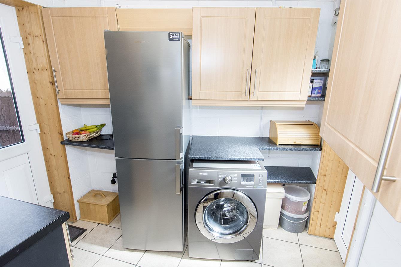 Utility Room - 2.34m x 2.21m max / 1.57m min (7'8" x 7'3" max / 5 - Opaque UPVC double-glazed front entrance door and rear entrance door. Space and plumbing for washing machine. Space for fridge/freezer. Tiled flooring.