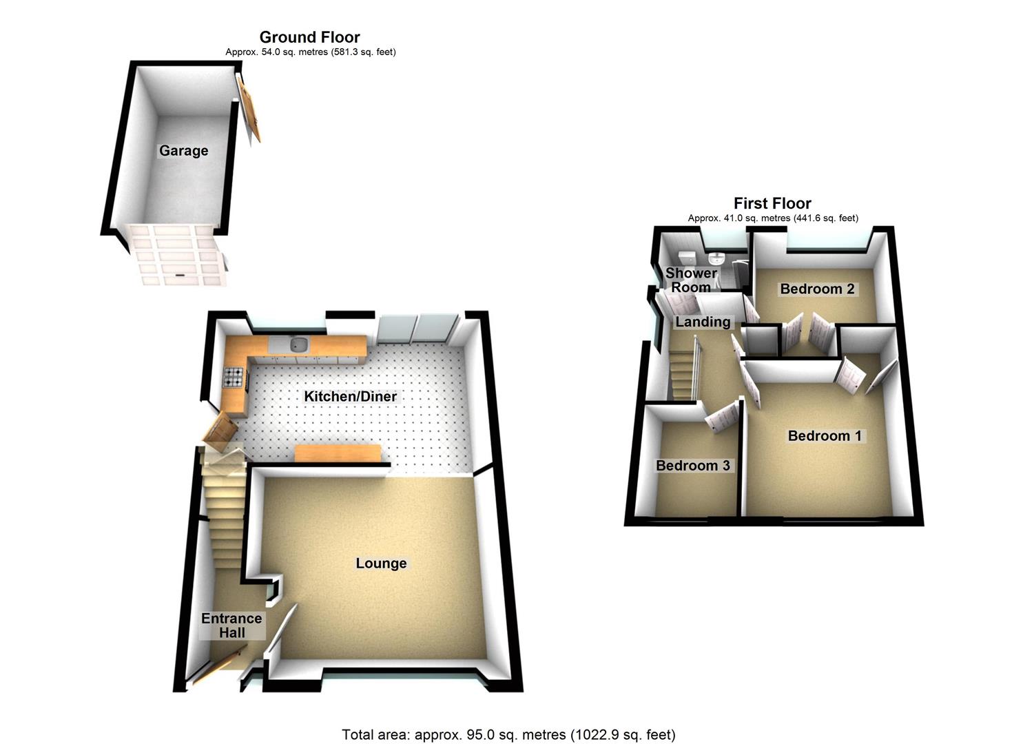 • Landing, Three Bedrooms, Shower Room