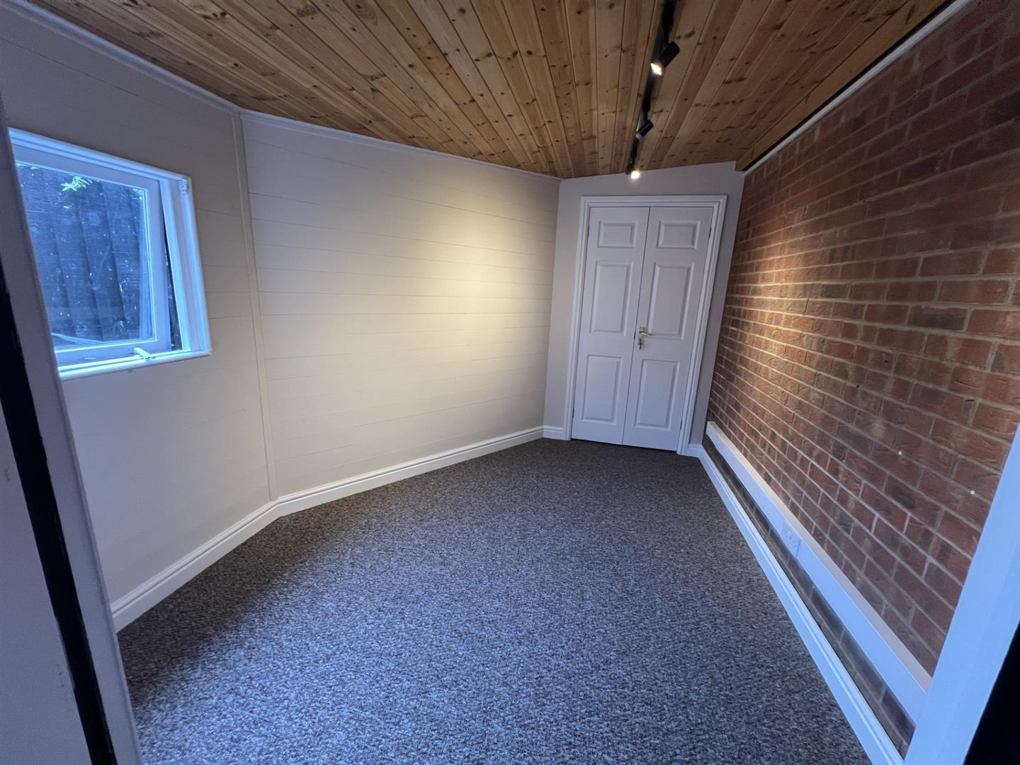 Play Room - 5.38m max to point / 3.05m min x 3.56m max (17'8" - UPVC double-glazed French doors to rear. Radiator. Double-glazed front entrance door leading out to the outside office.