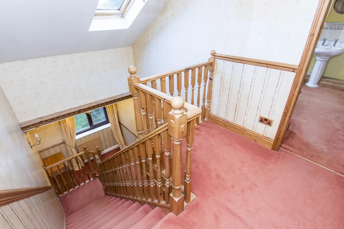 Landing - Pine balustrade and dado rail. Double glazed velux window. Access to loft space. Wall light. Doors to rooms.