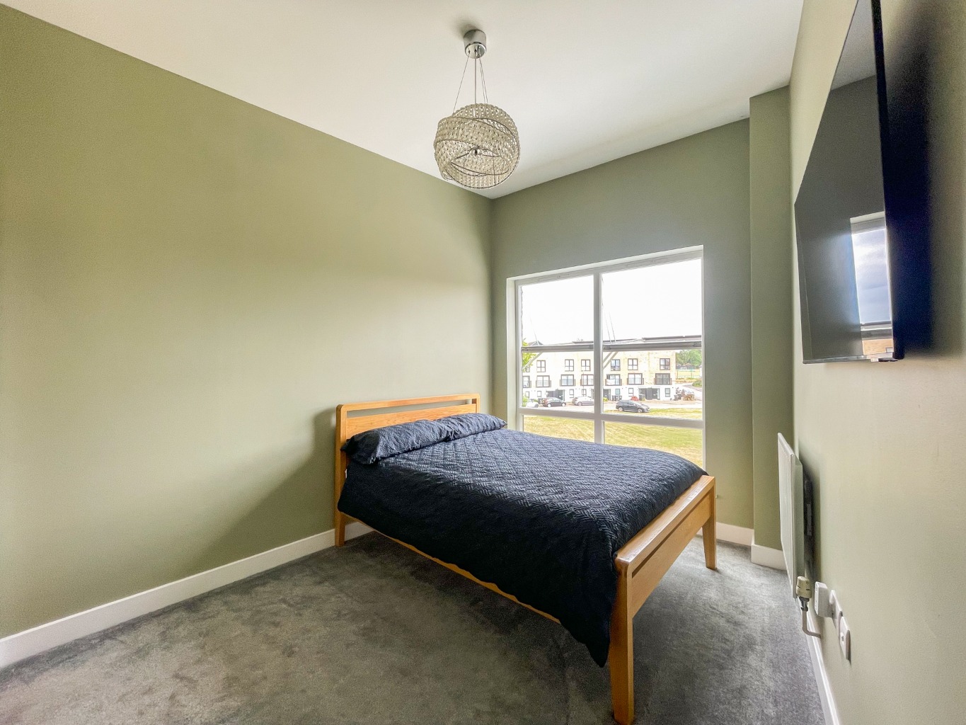 Enjoy views of a large, open green space from your own Juliette balcony, providing a sense of tranquility right at home. The main hub of this home is the air-conditioned living area where you will find the lounge/diner/kitchen all rolled in to one with it's dual aspect windows allowing plenty of light in.