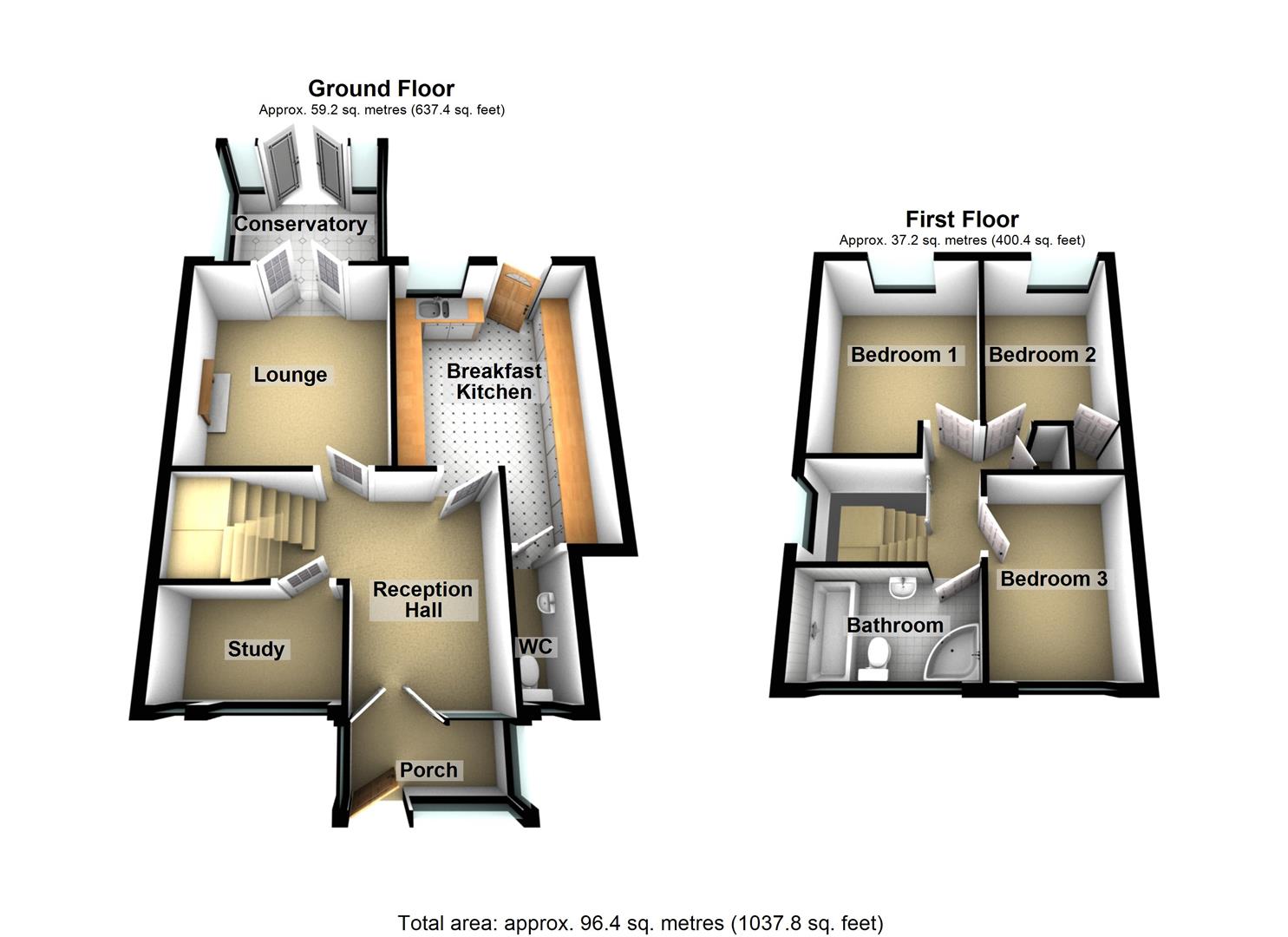 Study - 2.59m x 1.63m (8'6" x 5'4") - Two UPVC double-glazed windows to front. Radiator.