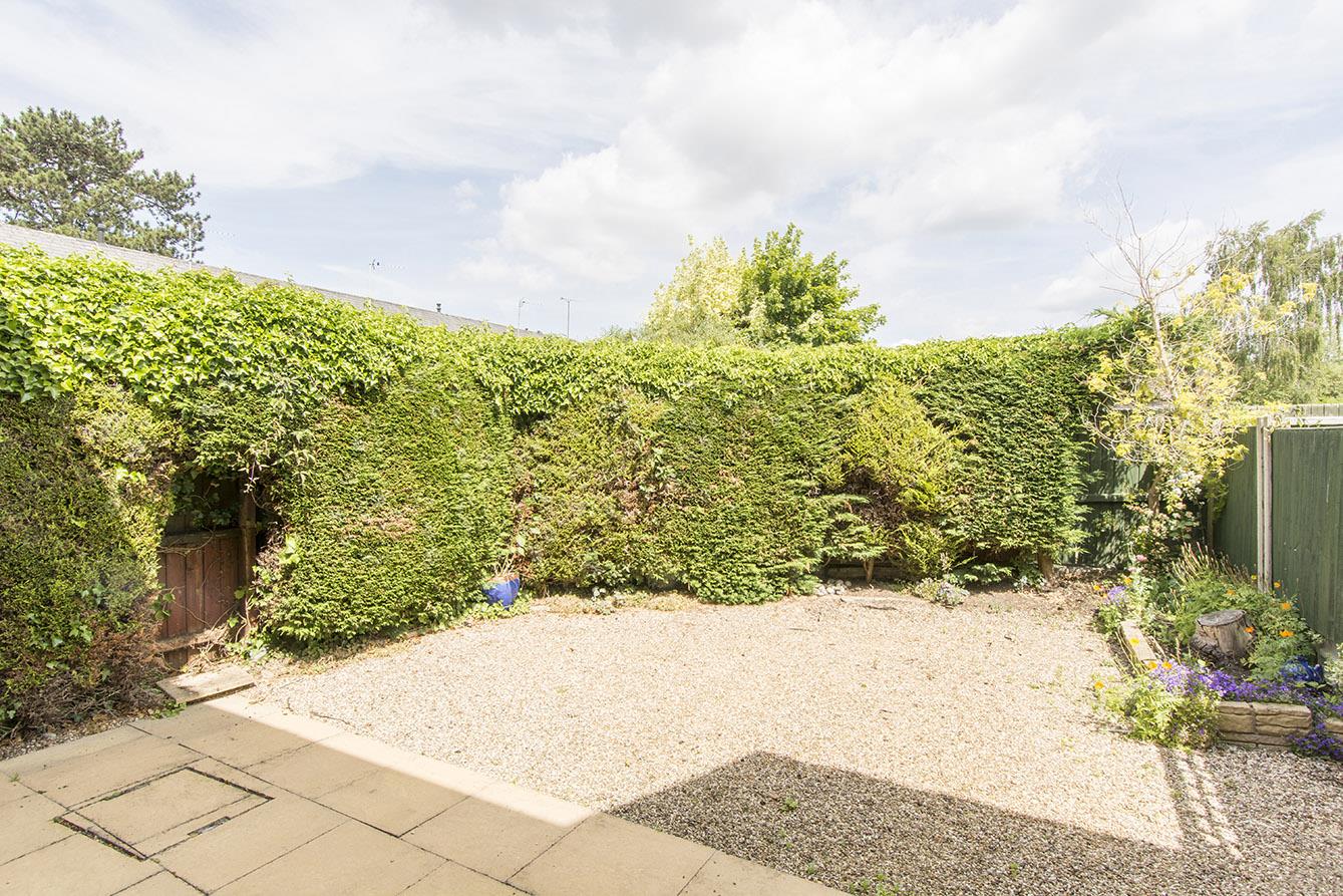 Rear Garden - Mainly paved and graveled. Enclosed by timber lat fencing and high hedging.