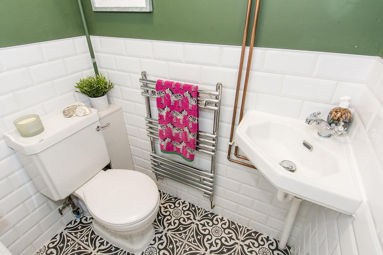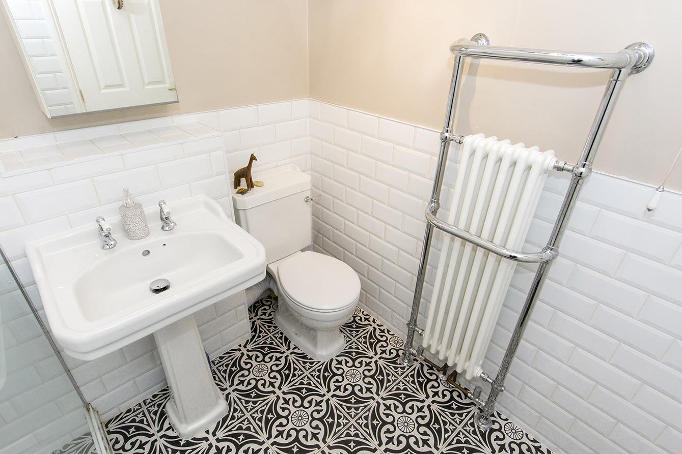 Downstairs Wc - 1.50 x 0.94 - WC suite comprising: Low level WC and corner hand basin. Complimentary wall tiling and feature flooring tiling. UPVC double glazed window to front aspect. Chrome heated towel rail.