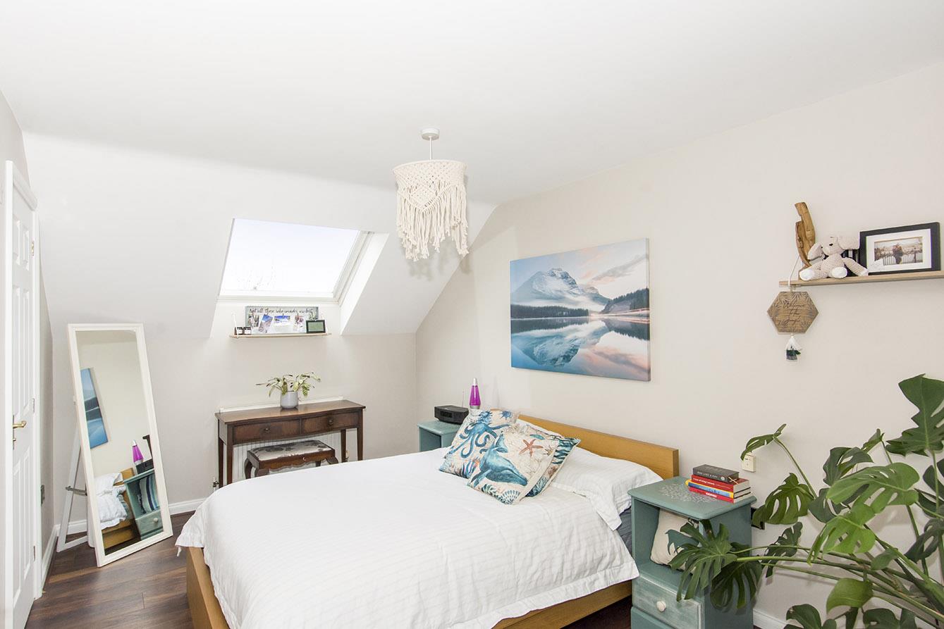 Bedroom One - 4.47 x 2.84 - Velux window to rear aspect. Radiator. Wooden laminate flooring.
