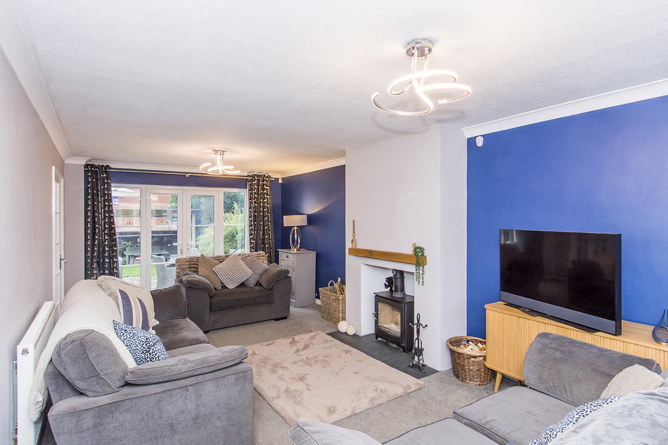 Lounge - 7.14m x 3.53m (23'5" x 11'7" ) - UPVC double-glazed bow window to front. UPVC double-glazed French doors and side lights to the rear. Log burning stove fire. Two radiators.