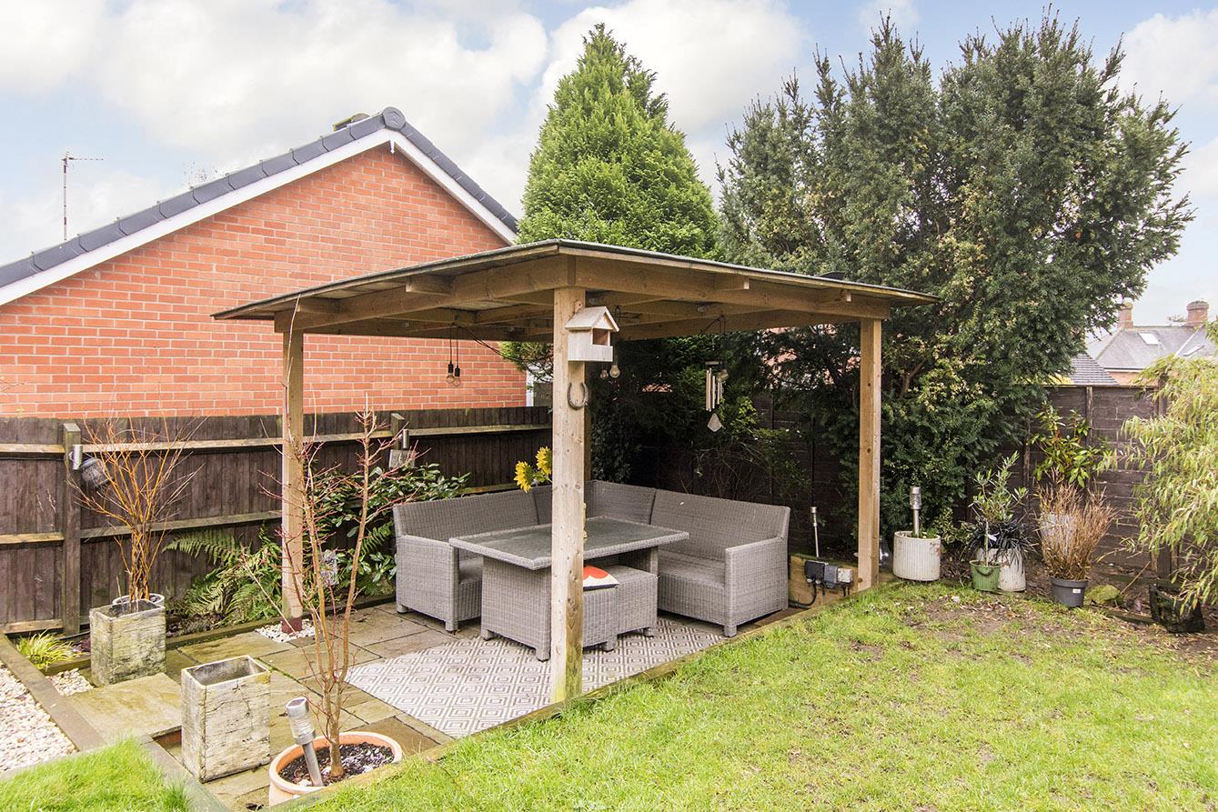 Rear Garden - Mainly lawned with paved pathway and patio. Gravelled area. Lower patio with timber pergola.