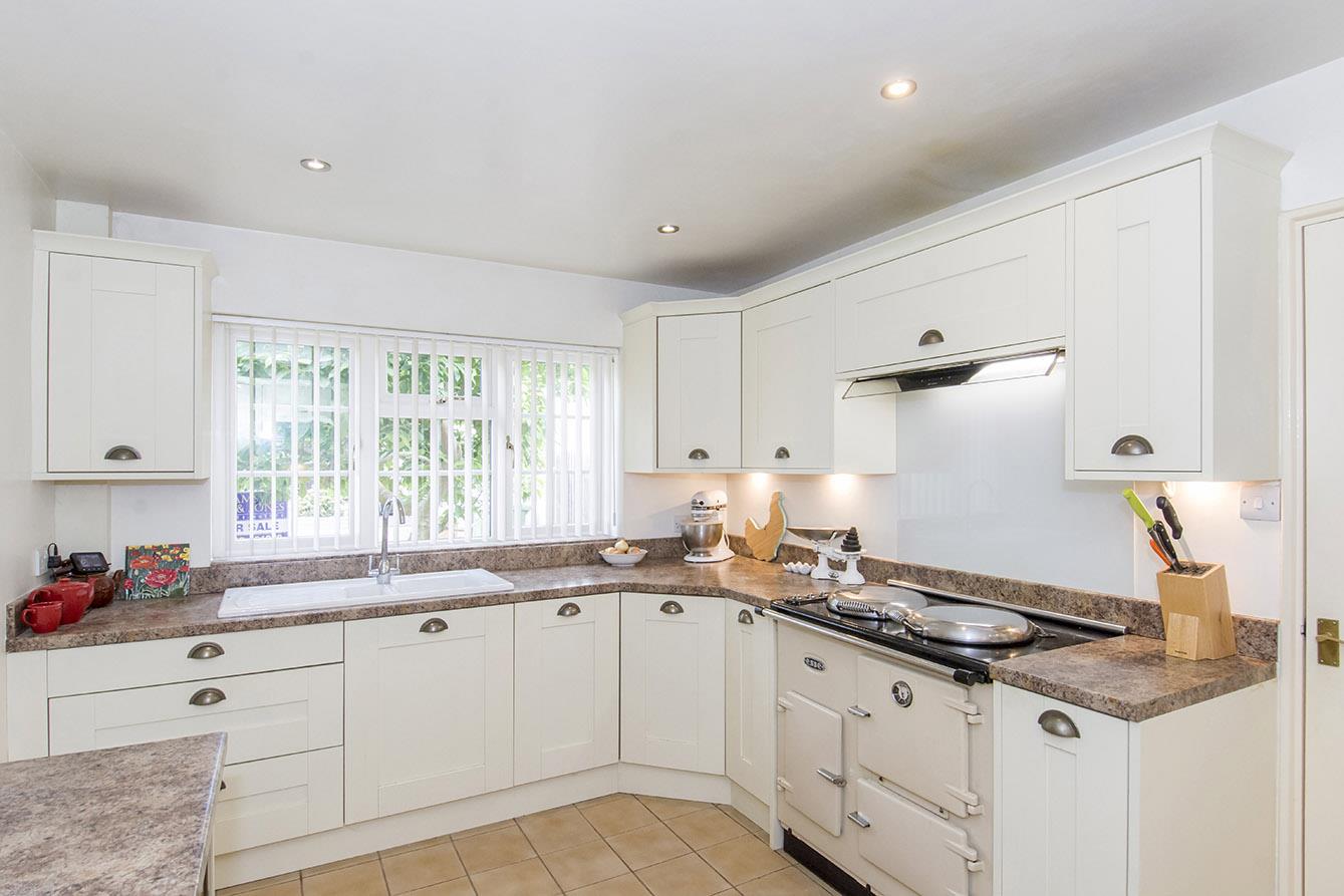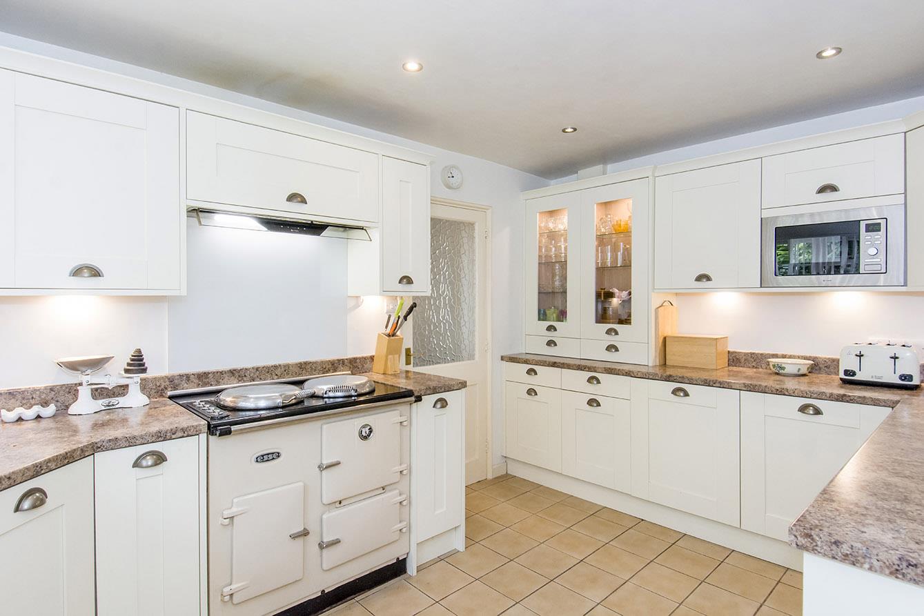 Kitchen - 4.09m x 2.84m (13'5" x 9'4") - UPVC double-glazed window to front. Fitted with a range of wall and floor mounted units with lighting under. Worktops with ceramic one and a half bowl sink inset. Built in wine cooler. Built in microwave. Built in electric range cooker. Extractor hood over. Integrated fridge. Door through to side entrance lobby.