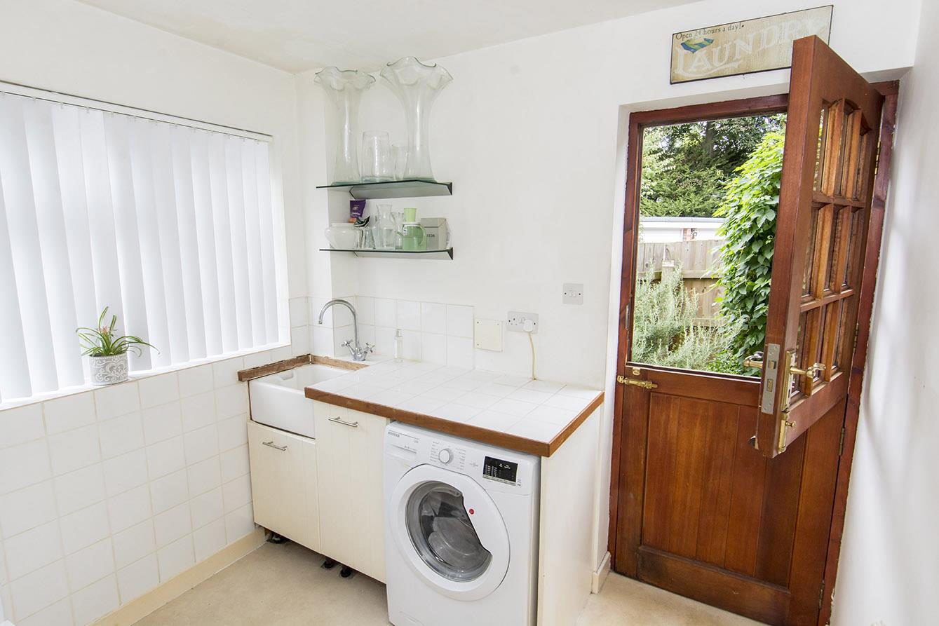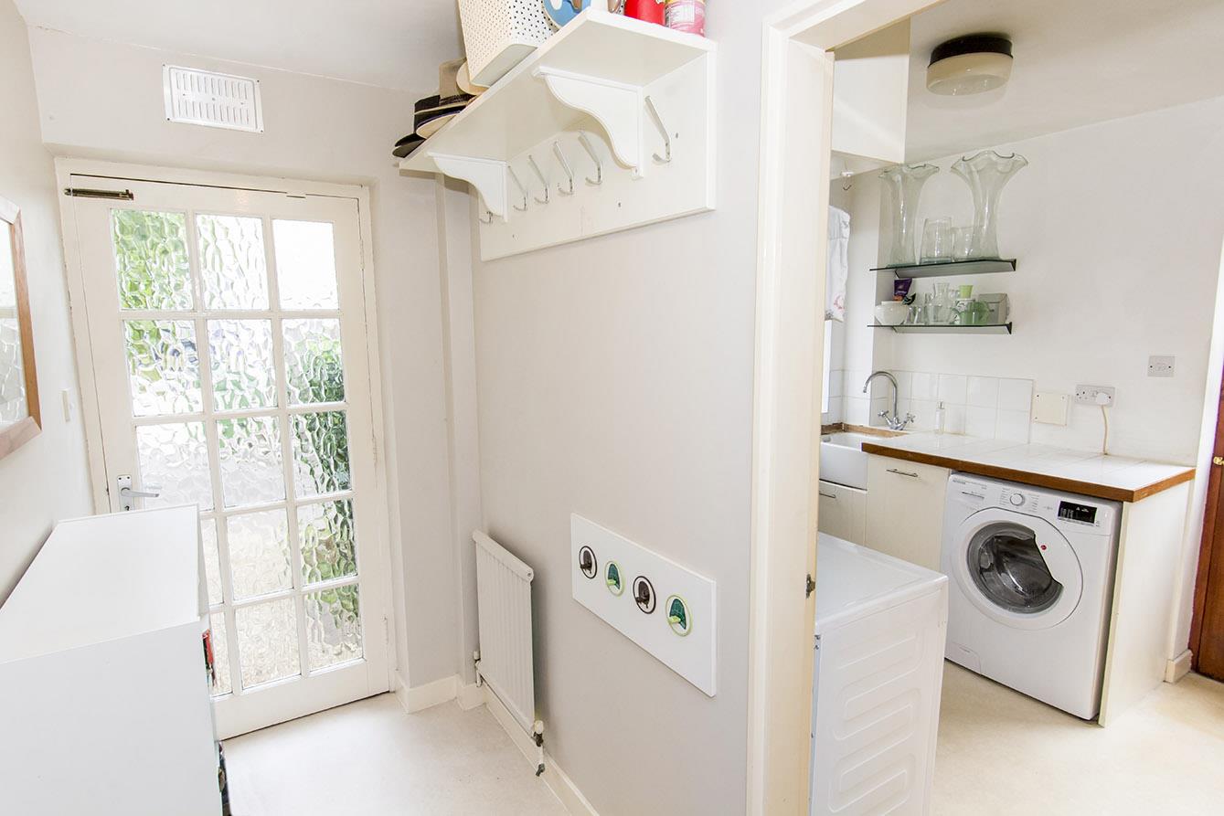 Utility Room - 2.34m x 2.26m (7'8" x 7'5") - UPVC double-glazed window to front. Timber single-glazed stable style entrance door. Space and plumbing for washing machine and fridge / freezer. Tiled worktop with sink inset. Radiator.