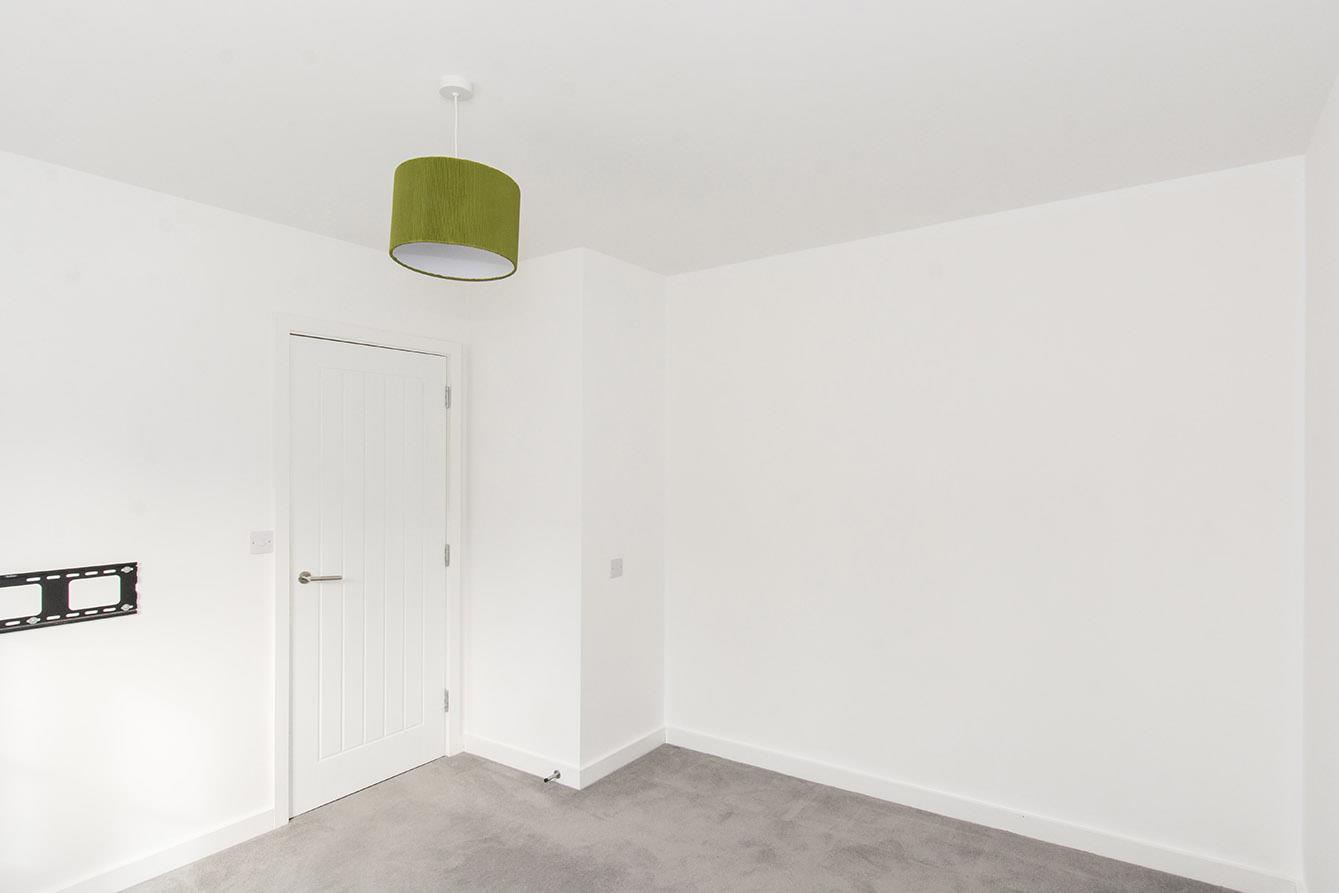 Bedroom Two - 3.25m x 3.25m plus wardrobe depth (10'8" x 10'8" p - UPVC double-glazed window to rear. Designer column radiator. Spotlights to ceiling. Television point. Data point. Fitted wardrobes.