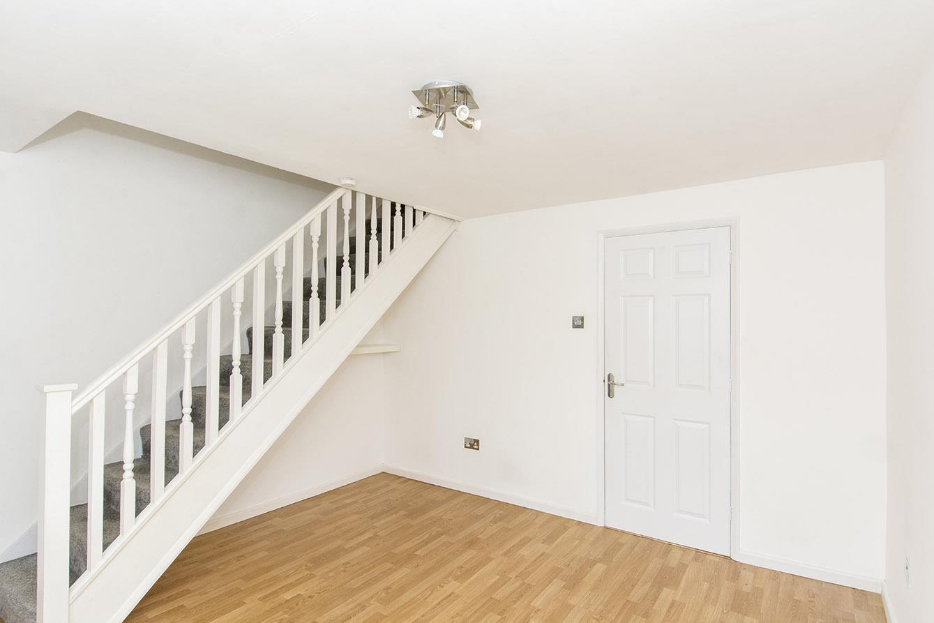 Lounge - 3.61m x 3.63m (11'10 x 11'11") - Double glazed window to the front elevation. Stairs rising to the first floor. Wood laminate flooring. Electric heater. Fitted shelving. Television point. Wall light. Door to:-