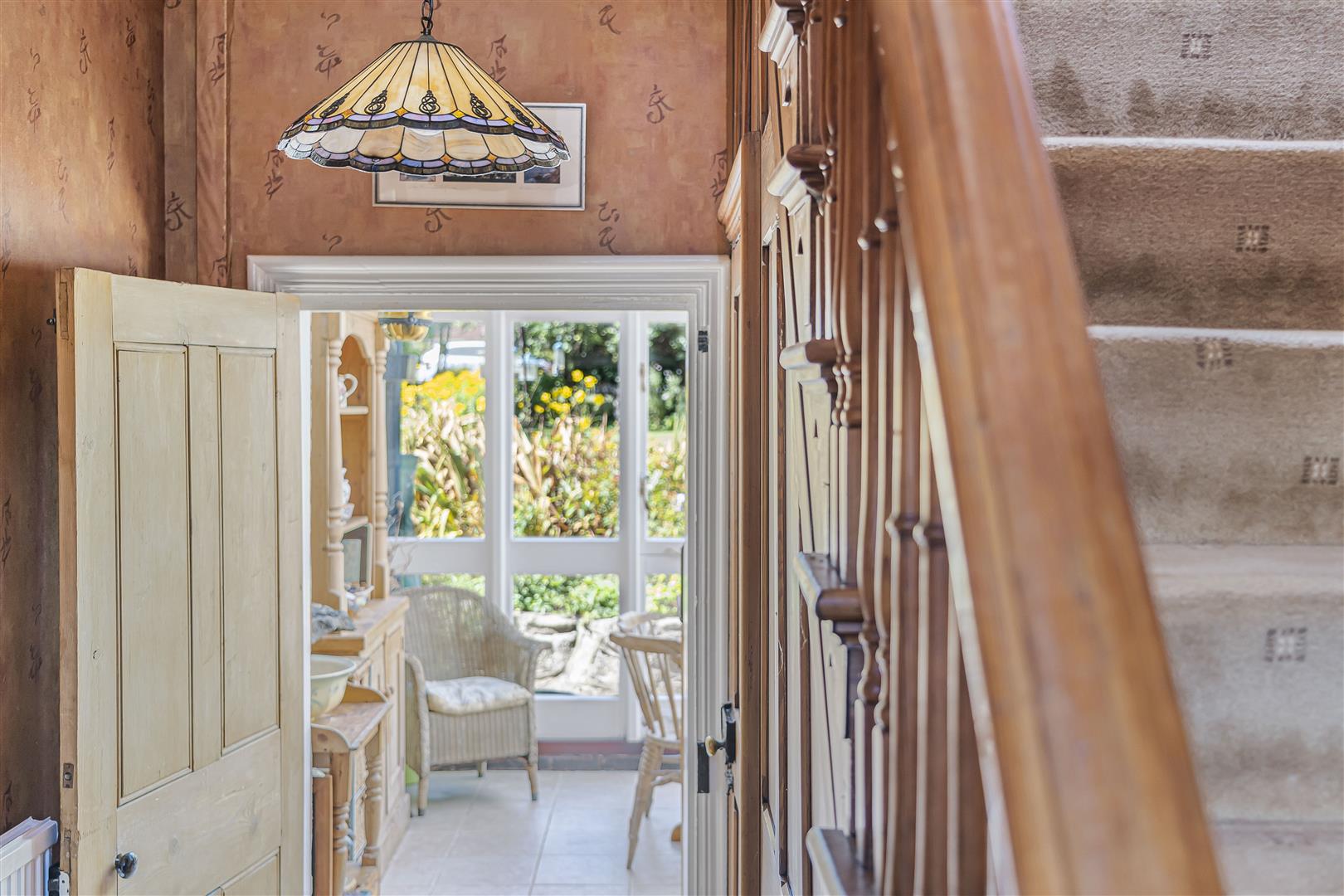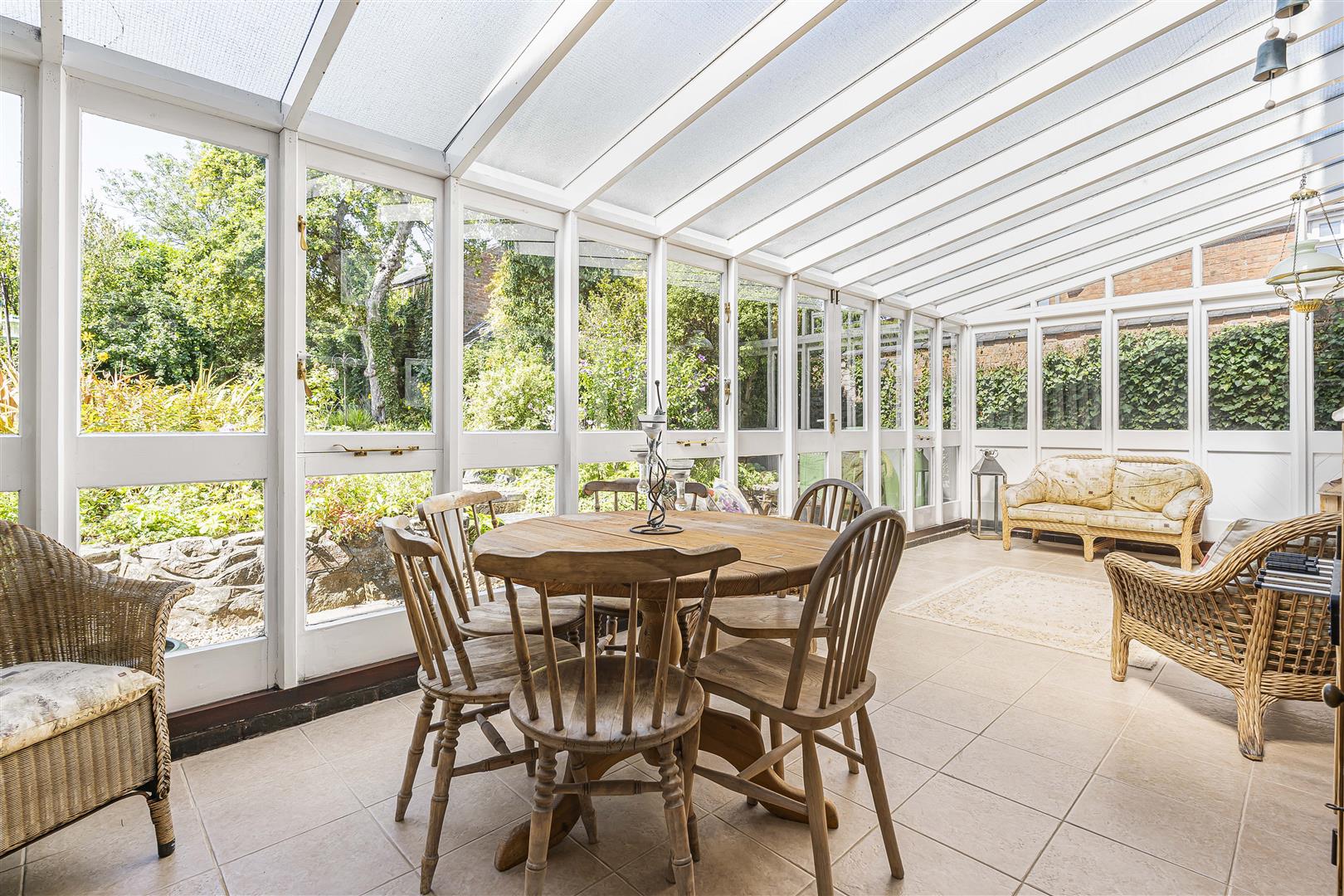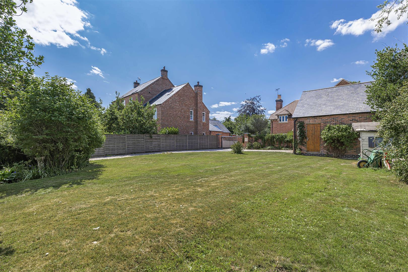 Outside - Set within generous, mature grounds, this property is predominantly laid to lawn and is securely enclosed by a combination of brick walls and fencing, ensuring privacy and peace of mind. As you step outside, you will discover a delightful patio area, perfect for al fresco dining or simply unwinding with a good book. The expansive lawn extends to a beautifully landscaped garden, adorned with mature trees and thoughtfully chosen shrubs, creating an idyllic play space for families and a serene retreat for all.