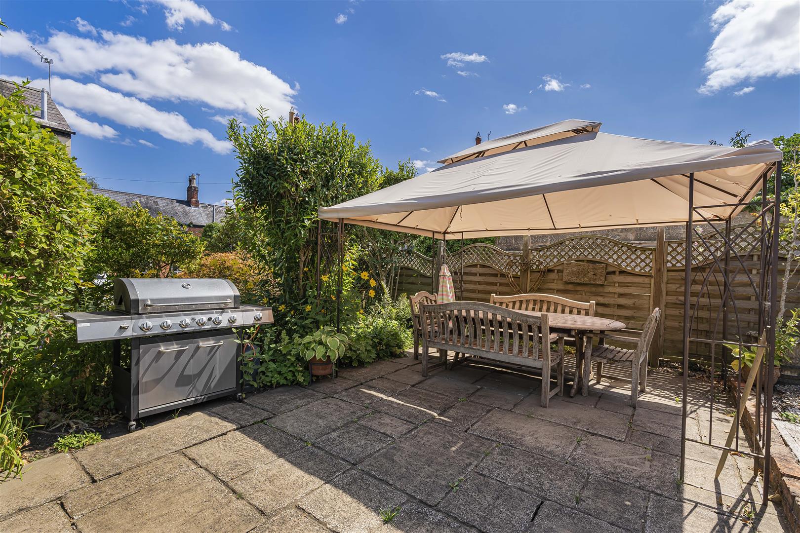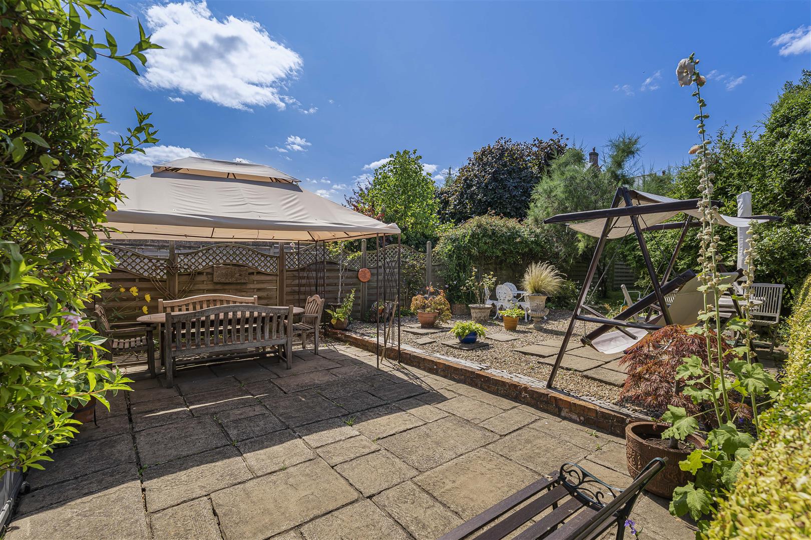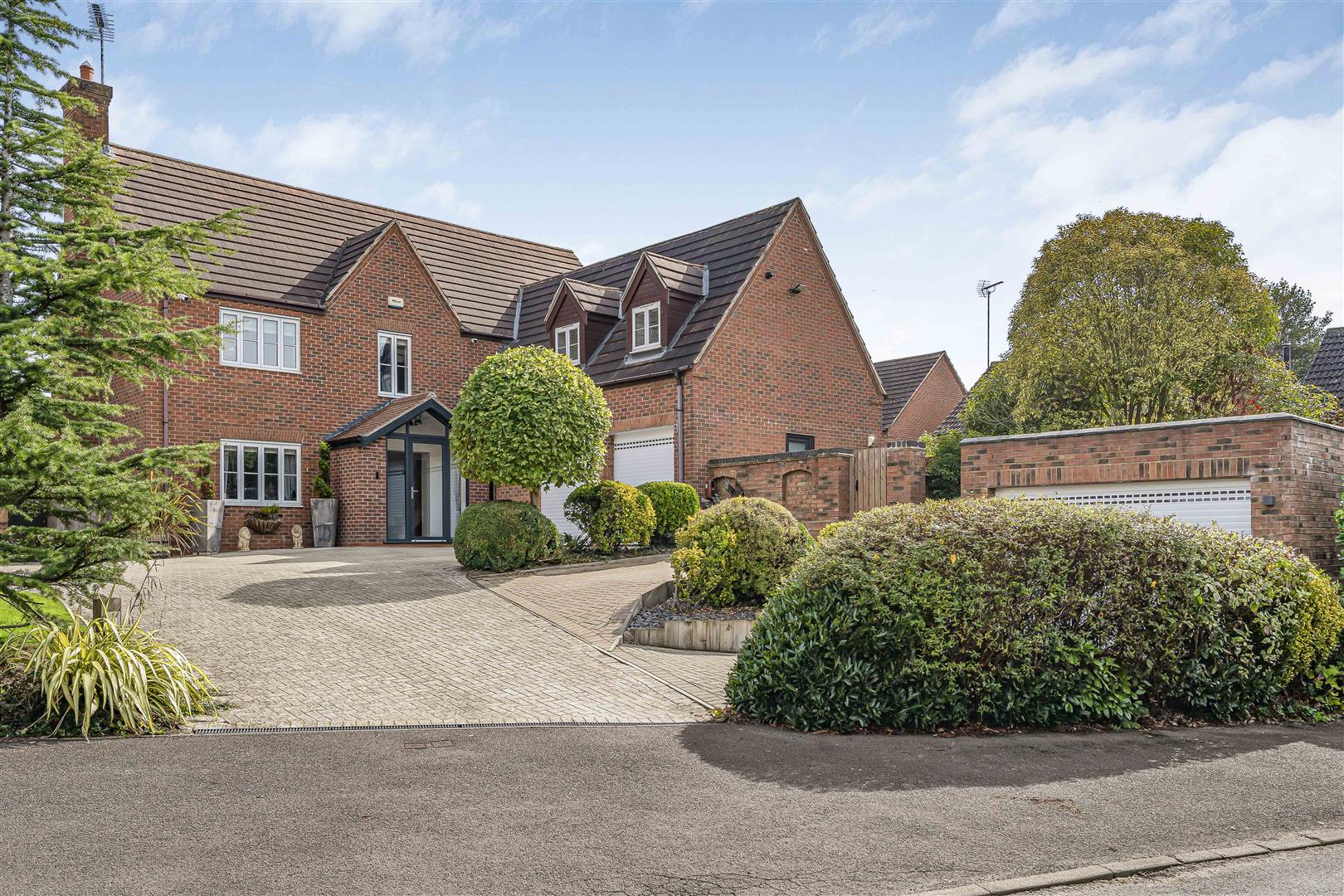 Outside - Set within generous, mature grounds, this property is predominantly laid to lawn and is securely enclosed by a combination of brick walls and fencing, ensuring privacy and peace of mind. As you step outside, you will discover a delightful patio area, perfect for al fresco dining or simply unwinding with a good book. The expansive lawn extends to a beautifully landscaped garden, adorned with mature trees and thoughtfully chosen shrubs, creating an idyllic play space for families and a serene retreat for all.