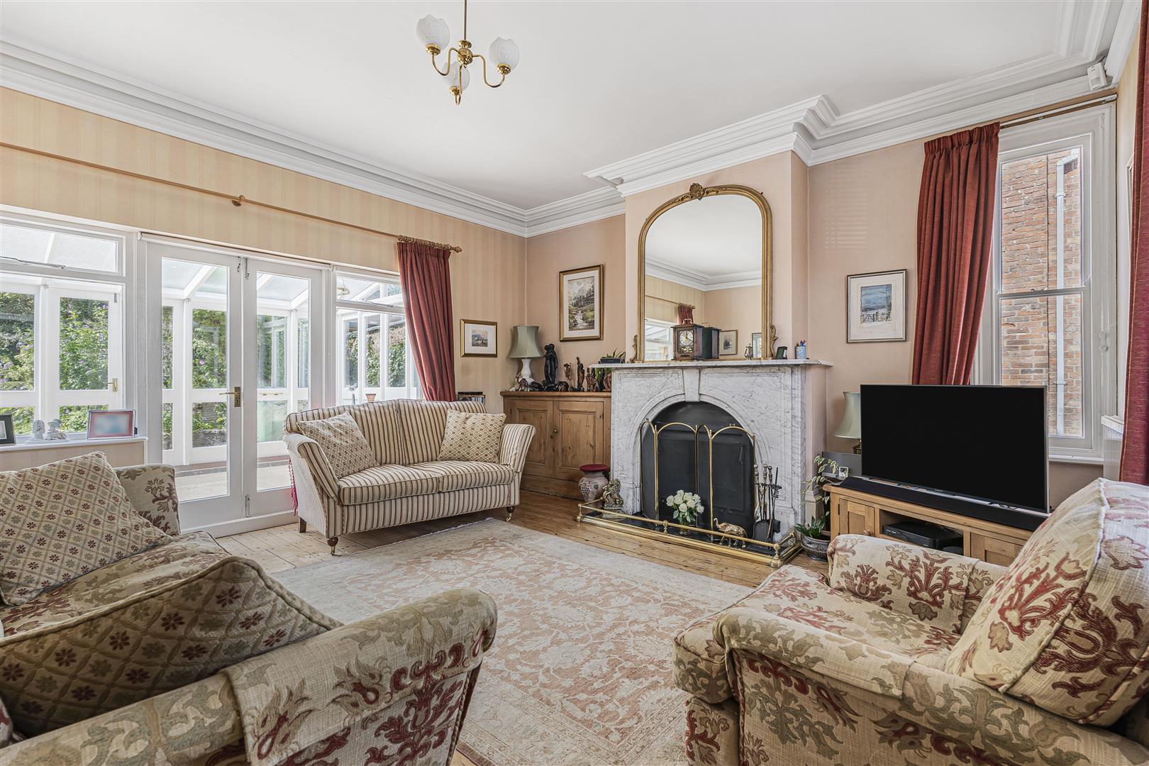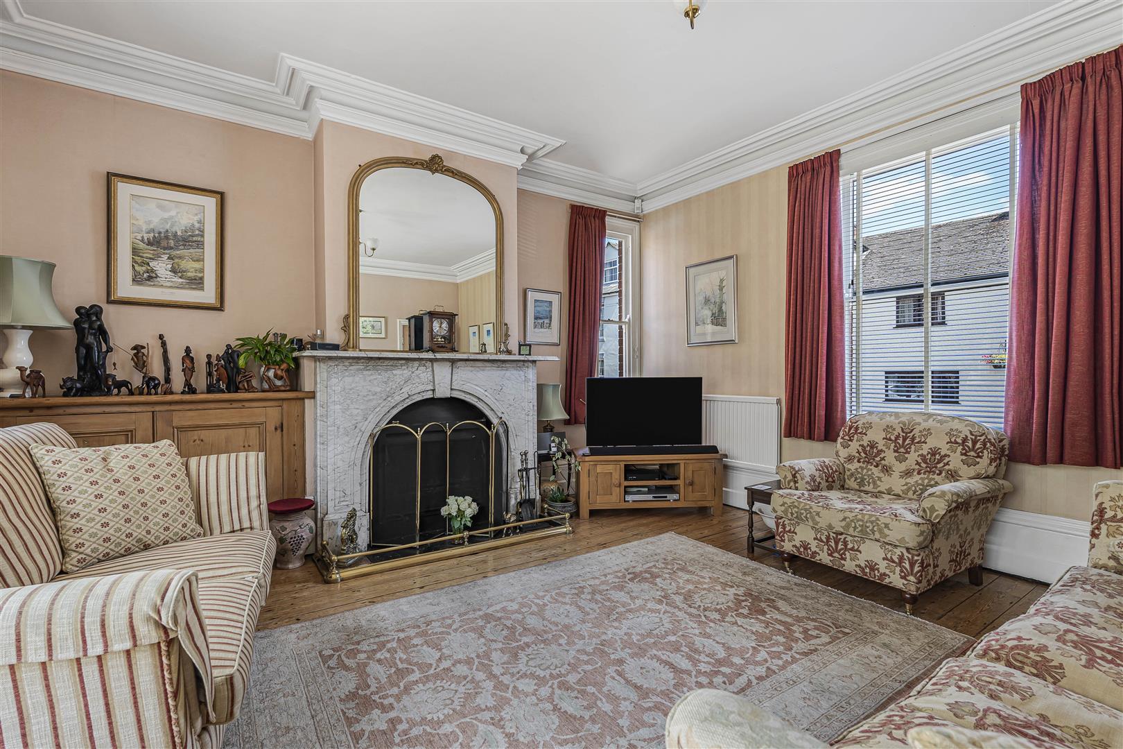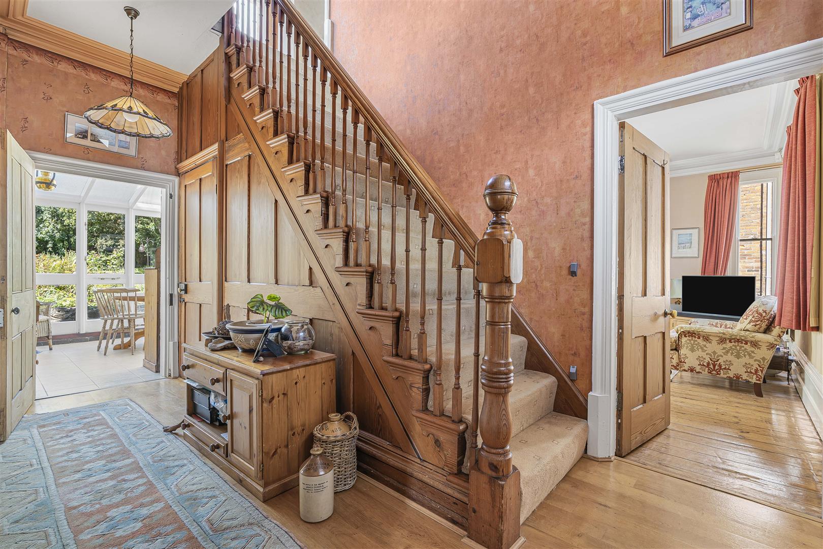 Ground Floor - Upon entering through the original wooden door, you are welcomed into a spacious entrance hall that leads to various inviting rooms, including the sitting room, conservatory, dining room, and a cellar that provides ample storage. The sitting room is a true highlight, featuring original wood flooring and two lovely sash windows that fill the space with natural light. The beautiful original fireplace adds character, while built-in cupboards offer practical storage solutions. Double doors open into the conservatory, a beautifully lit space with exposed brick that connects seamlessly to the rear garden, making it an ideal spot for relaxation or entertaining. The dining room continues the theme of elegance with its original cupboards, fireplace, and a large sash window that overlooks the front aspect. High ceilings enhance the sense of space, and double doors lead directly into the kitchen. The kitchen is a chef's delight, boasting a large range cooker, tiled flooring, and double aspect windows that provide delightful views of the picturesque rear garden. It is well-equipped with a good range of cupboard space and room for fitted appliances. Additionally, the property features a convenient lobby area with connecting doors to the outside, a downstairs WC, and a snug/sitting room, perfect for cosy evenings in.