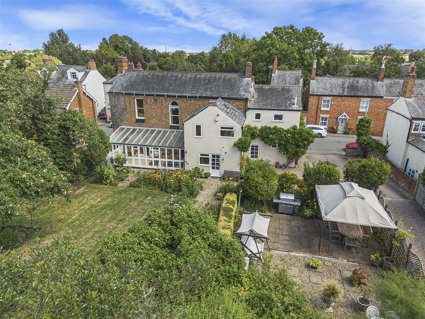 Nestled in the heart of the picturesque village of Leire, Ash House is a splendid four-bedroom detached residence that beautifully embodies the charm of Victorian architecture. This delightful property, located on Main Street, is part of a conservation area and is surrounded by other period homes that contribute to the village's character. Originally constructed in 1860, Ash House boasts a striking red brick exterior, complete with vertical sliding sash windows and traditional chimney pots, all of which enhance its historic appeal. The original panelled front door, adorned with a fan light, welcomes you into a home that has been lovingly maintained by its current owner for over four decades. The interior of Ash House has been thoughtfully extended, providing a spacious additional reception room and a fourth bedroom, making it ideal for family living. The generous garden room offers a serene view of the enchanting cottage garden, which is perfect for enjoying the beauty of nature. At the bottom of the garden, a double garage is discreetly positioned, providing ample storage and parking space.